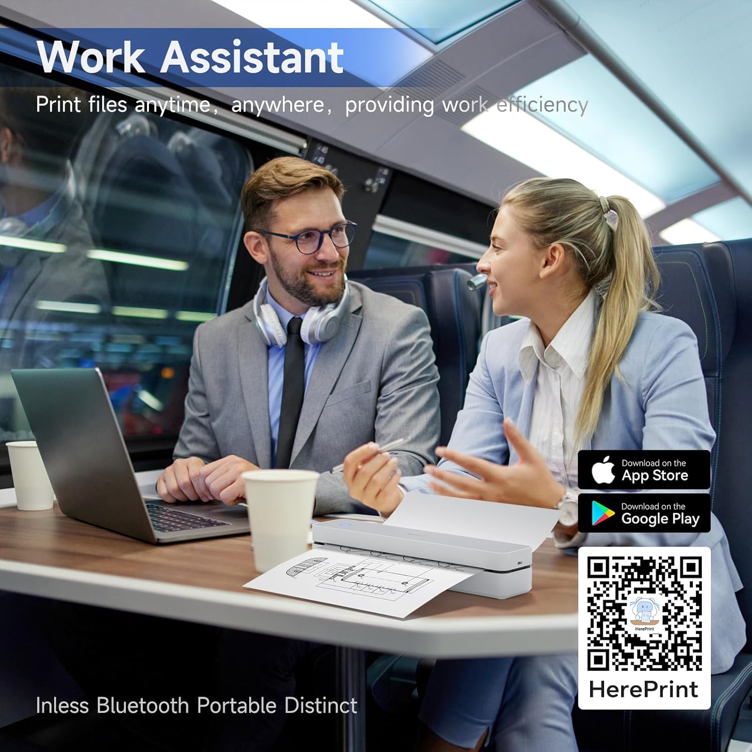 - Universal Compatibility & Wide Printing Range - The thermal inkless printer is compatible with a wide range of OS, including iOS (for iPhone & iPad), Android, Windows, and Mac, OS.It supports a variety of thermal paper sizes, such as 8.5"x11" US letter and legal paper, A4, A5, and 4" - wide thermal paper. (Note: Portable printer is a thermal printer and only supports thermal paper, not support regular copy paper.)