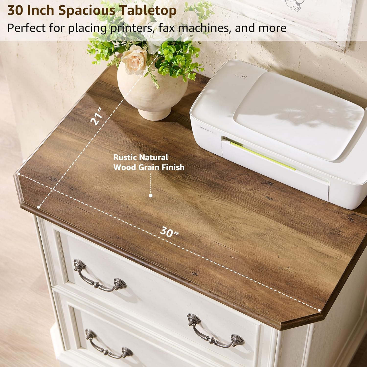 - Exquisite, Robust, and Timeless Design: Experience a blend of Victorian-inspired elegance and modern durability with this 30"L x 21"W x 30"H farmhouse lateral file cabinet. Hexagonal structure design, framed drawer fronts, hand-polished Roman column handles, and natural wood grain textures elevate your home office or living space with structured sophistication. Heavy and gorgeous, with a rich and natural look