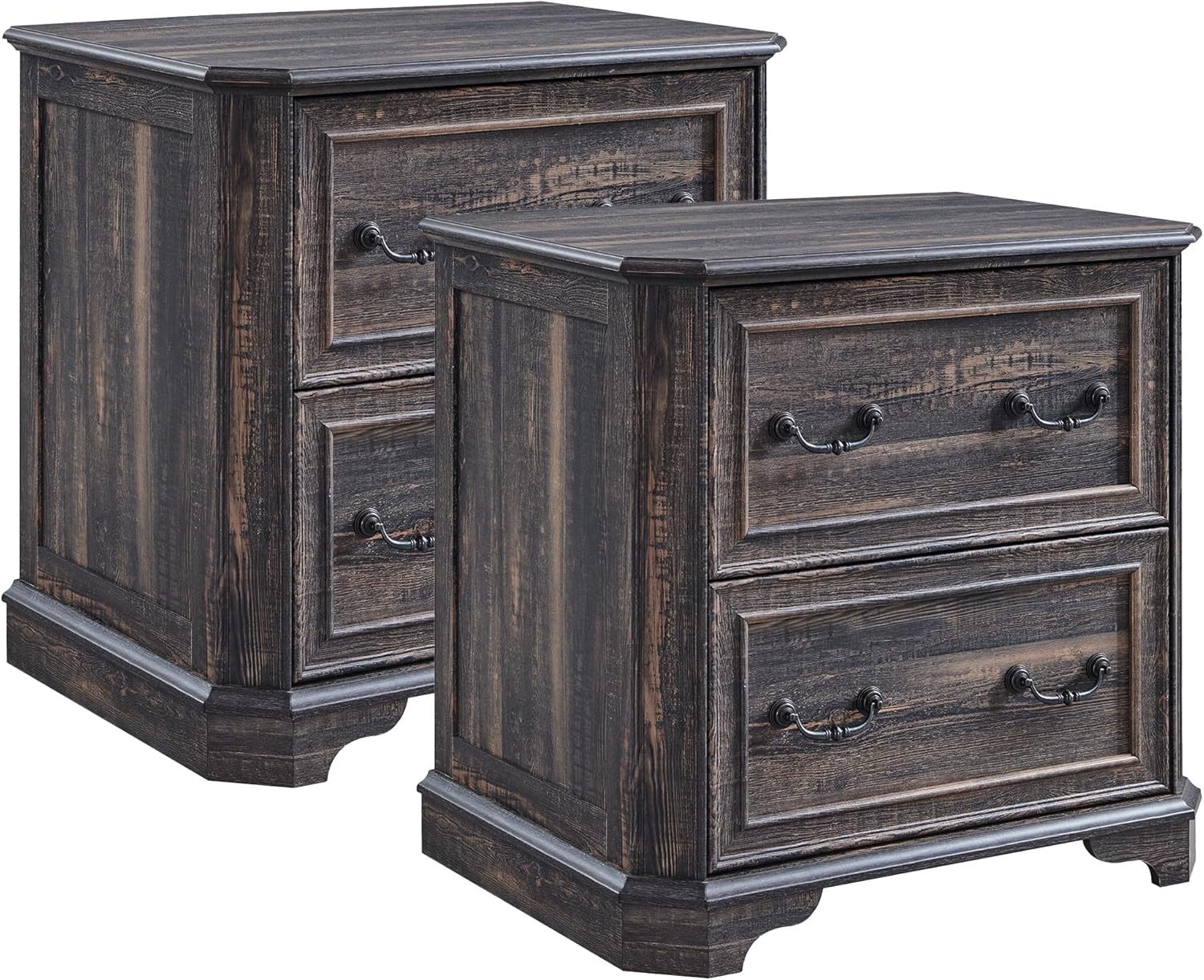 T4TREAM 2 Drawer File Cabinet Set of 2, 30" Wide Wooden Extended Desktop, Farmhouse Filing Cabinet with Smooth Rails, Holds Letter/Legal/A4, Hexagonal Design & Framed Drawer Fronts, Dark Rustic Oak
