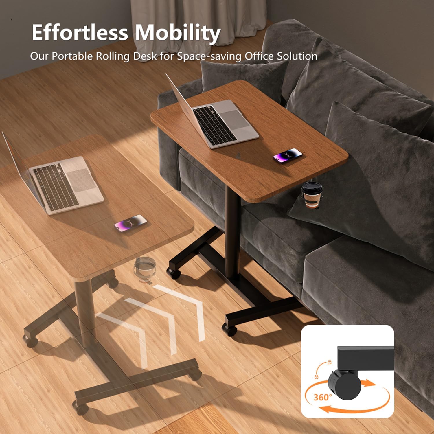 28-Inch Mobile Standing Desk Adjustable Height with Cup Holder, Portable Standing Desk with Lockable Wheels, Rolling Table for Home Office Classroom Hospital (Walnut)