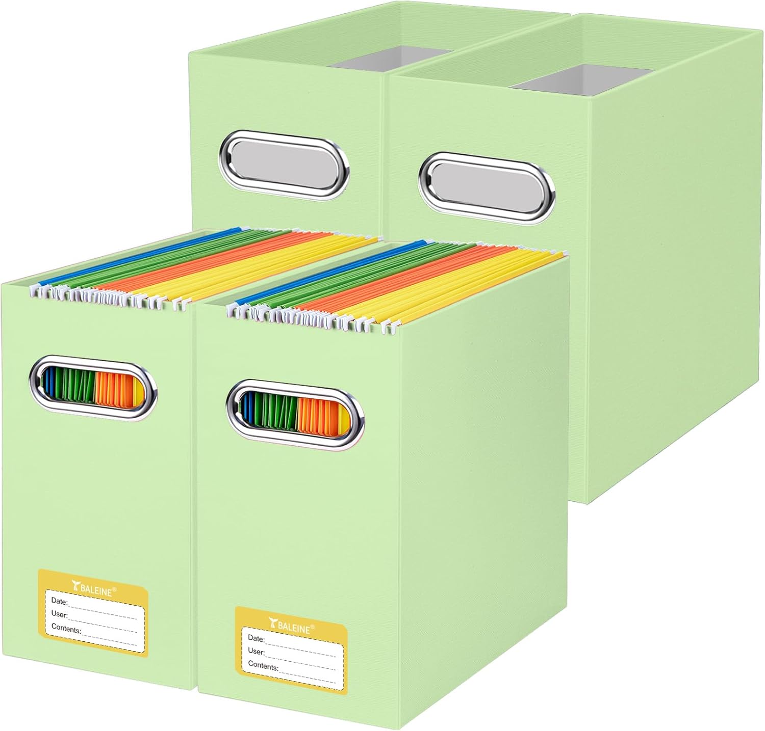 BALEINE File Organizer Box, Cardboard File Folder Organizer with Handle for Letter Size, Portable Collapsible Hanging Filing Box for Home Office Document Storage (4 Pack, Green)