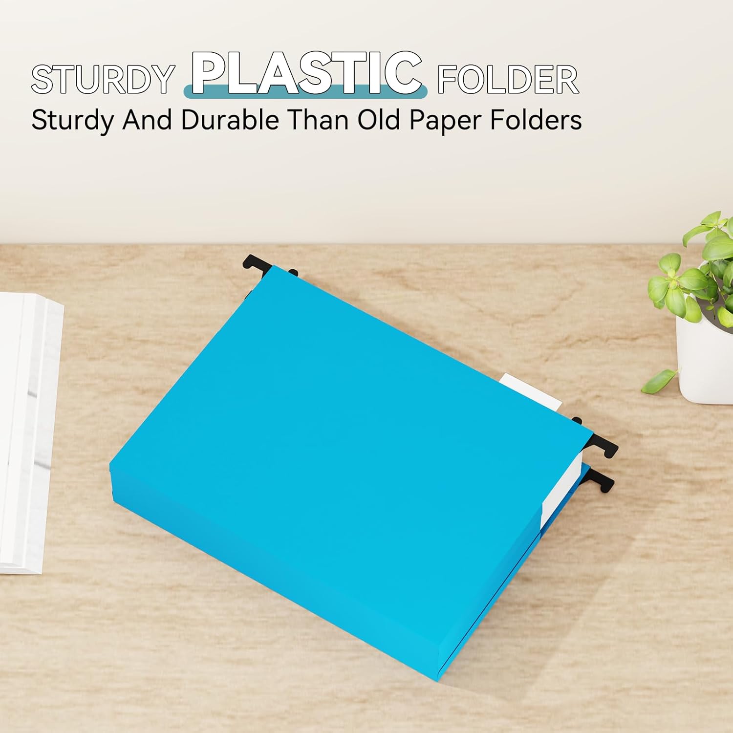 - 【LETTER SIZE】: Plastic hanging file folder about 11.8 x 9.25 inches, Suitable for cabinets, drawers, and file boxes of various standard sizes,contains 12 plastic hanging folders and 15 blank labels insert adjustable tabs.