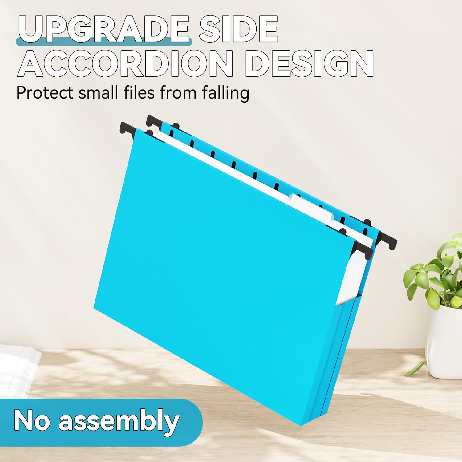 - 【2025 NEW UPGRADED SIDES EXPANDABLE DESIGN】: The newly upgraded hanging file cabinet folder does not have gaskets and does not require assembly,practical accordion design avoid small files, papers, and pictures falling,protecting your files well.