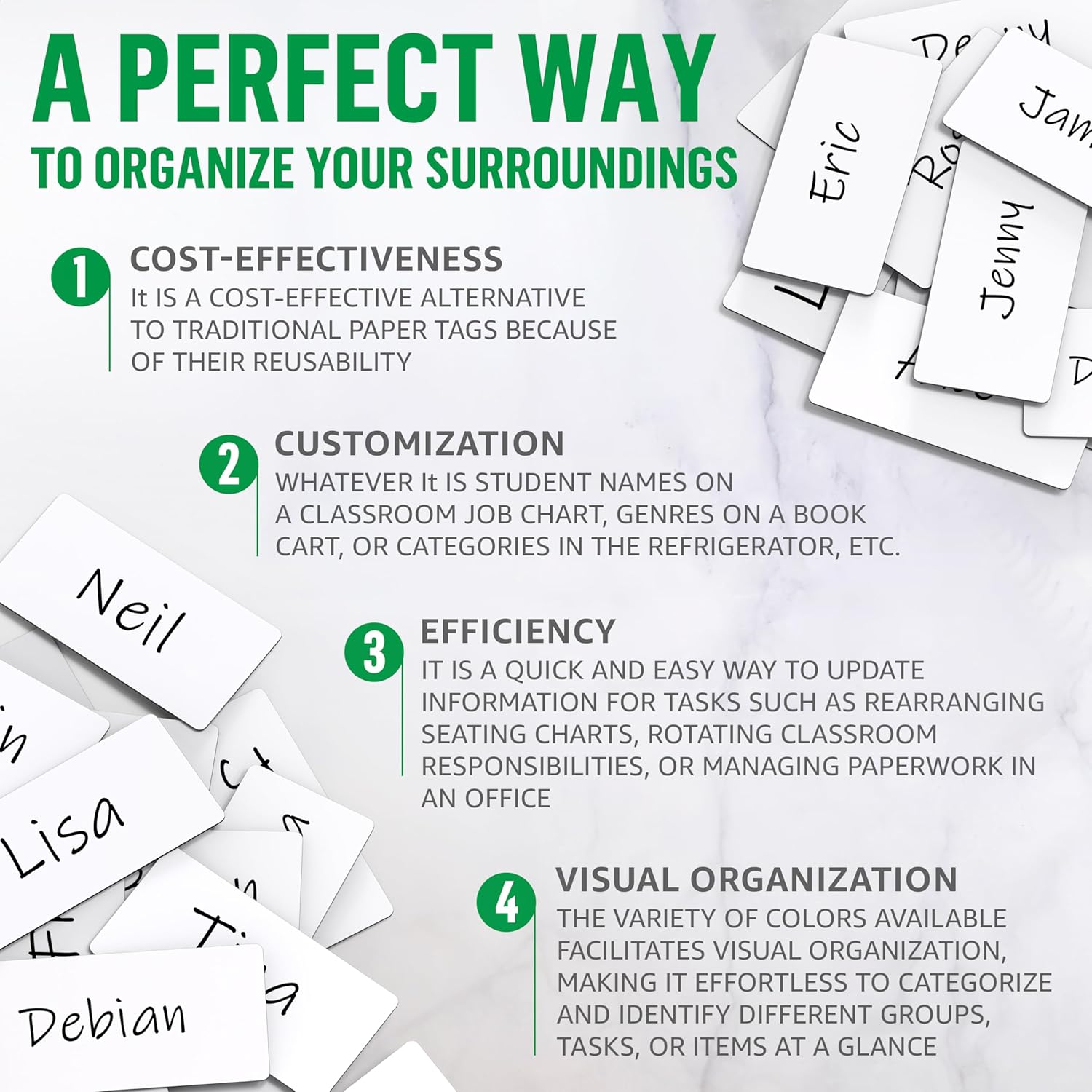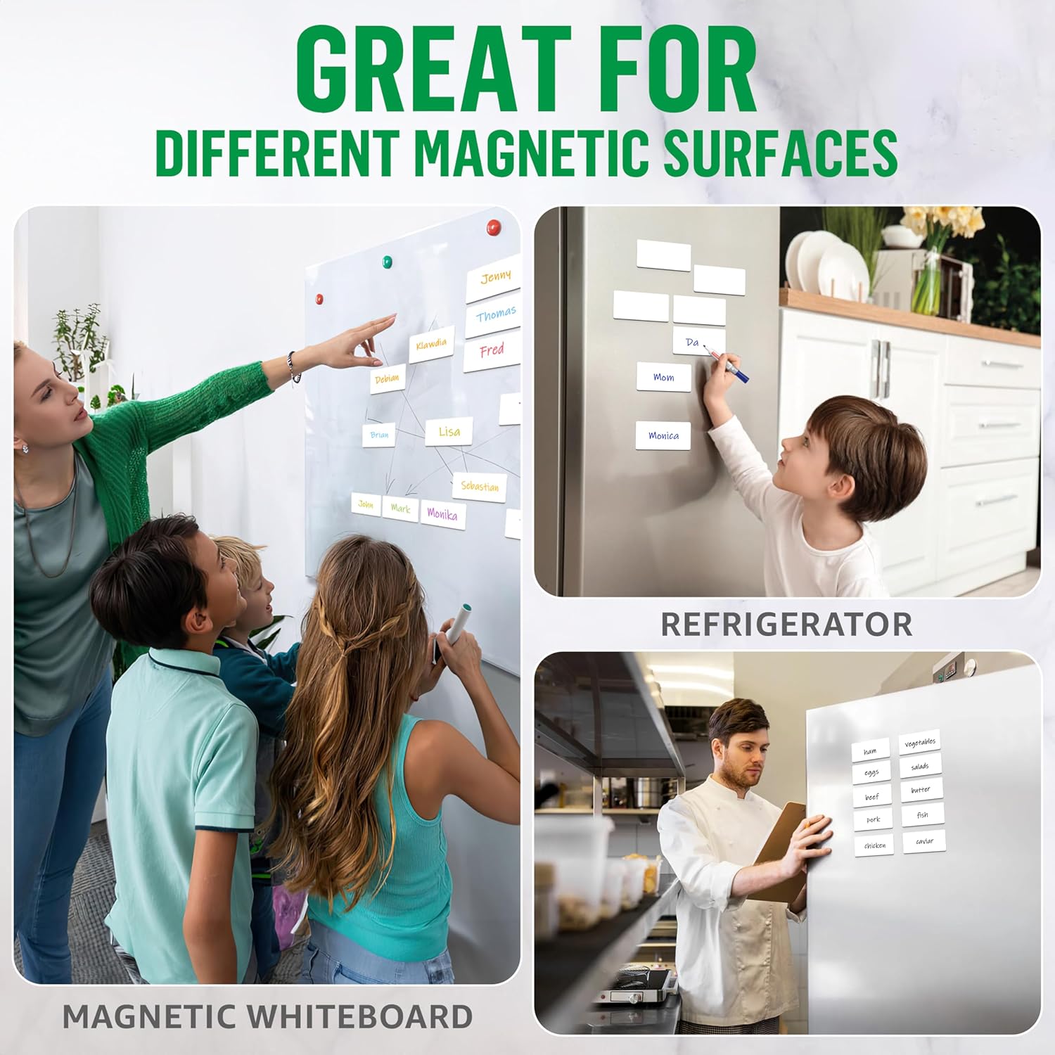 - Versatile Solutions - These dry erase magnets labels are an organizational game-changer. They excel as magnet labels for classroom use or as custom name magnets for whiteboard to personalize any space.