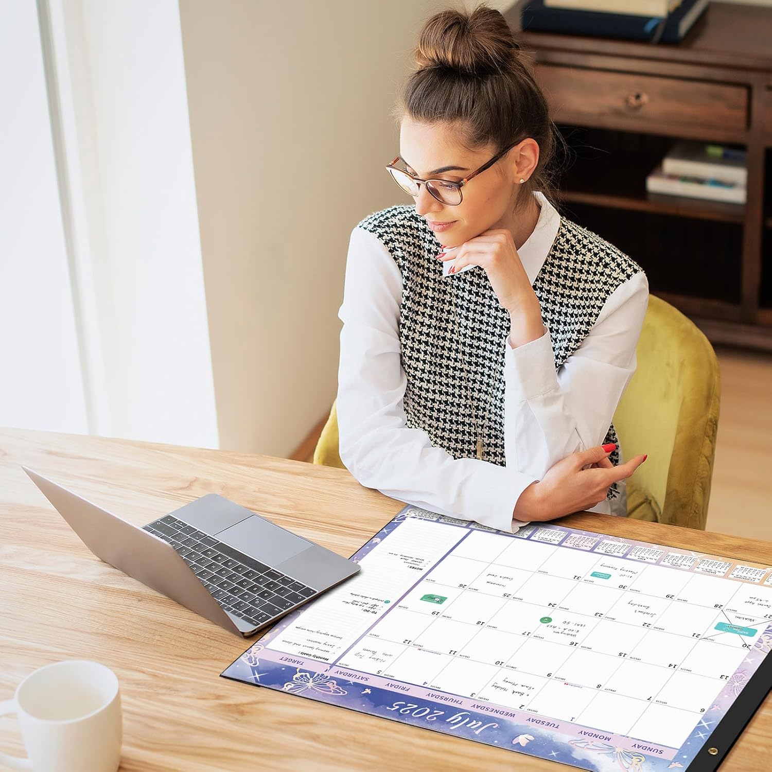 - Monthly Desk Calendar with Stickers: One month per page layout help you organize your monthly plans and goals. The calendar set includes planning stickers. A variety of planning stickers can also add some interest to the calendar.