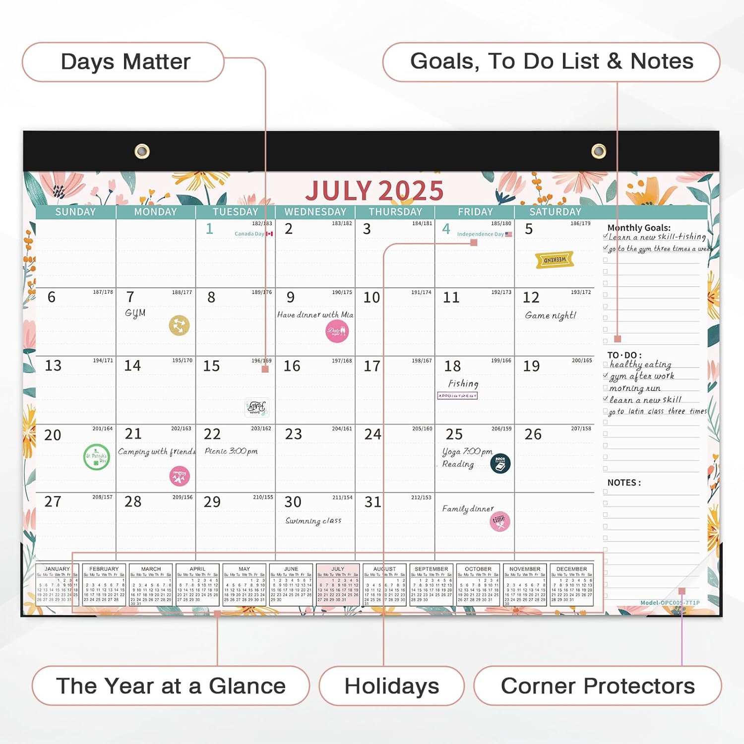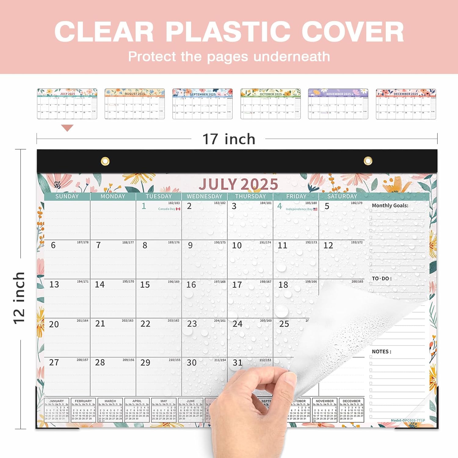 Ospelelf Desk Calendar 2025-2026, Magnetic Fridge Wall Calendar, 18 Month Monthly Large Calendar Planner with Plastic Cover 17" X 12", July 2025 to December 2026 Ditsy Floral