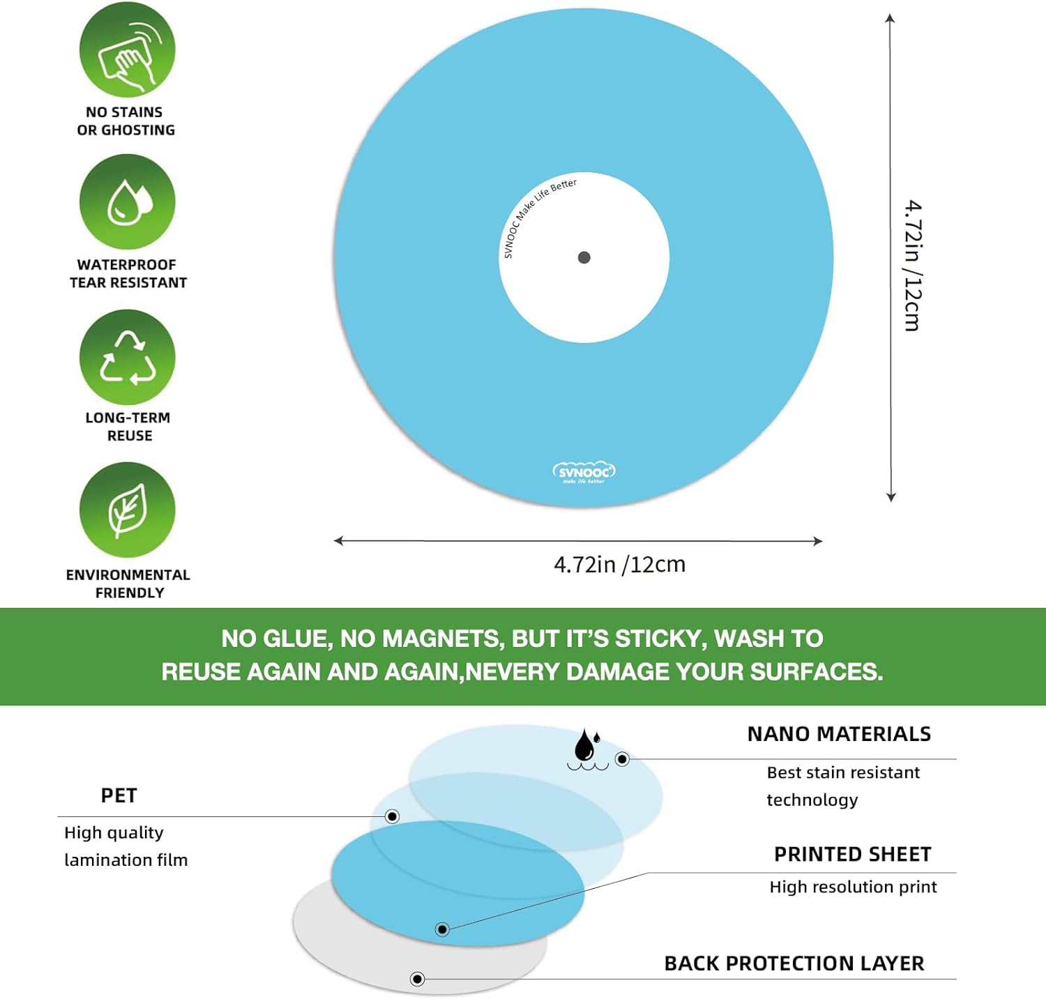 - 💖Really Reusable Dry Erase Sticky Notes - SVNOOC dry erase sticky notes are made of Freon-free Nano Material and dry erase film, can be reused up to10,000 times each. Smooth writing and wipe off easily, no glue, no magnetic but can stick well, heat resistant, microwave safe, just WASH to Renew if get dirt or stickless