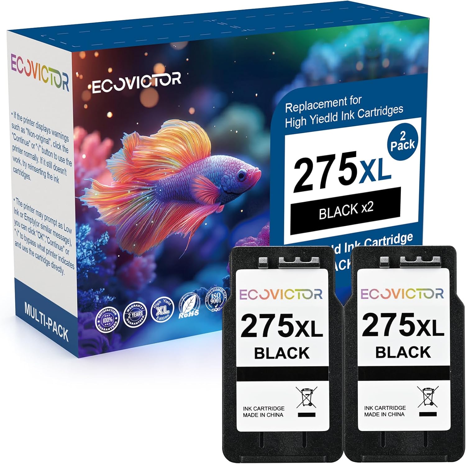 - Vivid, Professional Results: Formulated with premium-quality ink, our pixma 275 black xl replacement for canon pg 275 black ink cartridge delivers crisp, clear text and rich, vibrant images. EcoVictor 275 xl ink for canon printer ink 275 is perfect for everyday documents, schoolwork, creative projects, and photos—fade-resistant and smudge-proof.