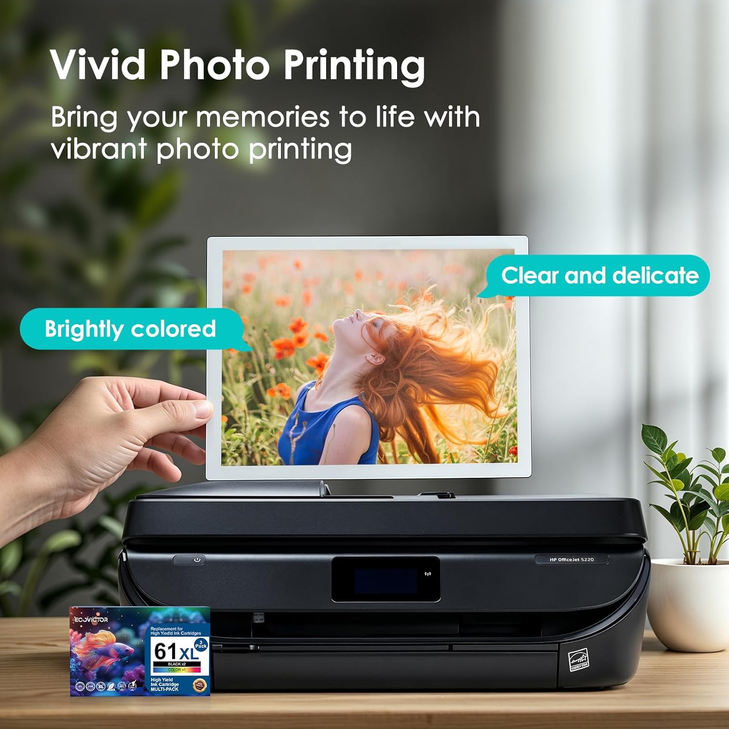 - Vivid, Professional Results: Formulated with premium-quality ink, our 61 ink cartridges for hp61xl black/tricolor ink cartridges deliver crisp, clear text and rich, vibrant images. EcoVictor ink cartridges 61xl for hp ink 61xl black and color combo pack is perfect for everyday documents, schoolwork, creative projects, and photos—fade-resistant and smudge-proof.