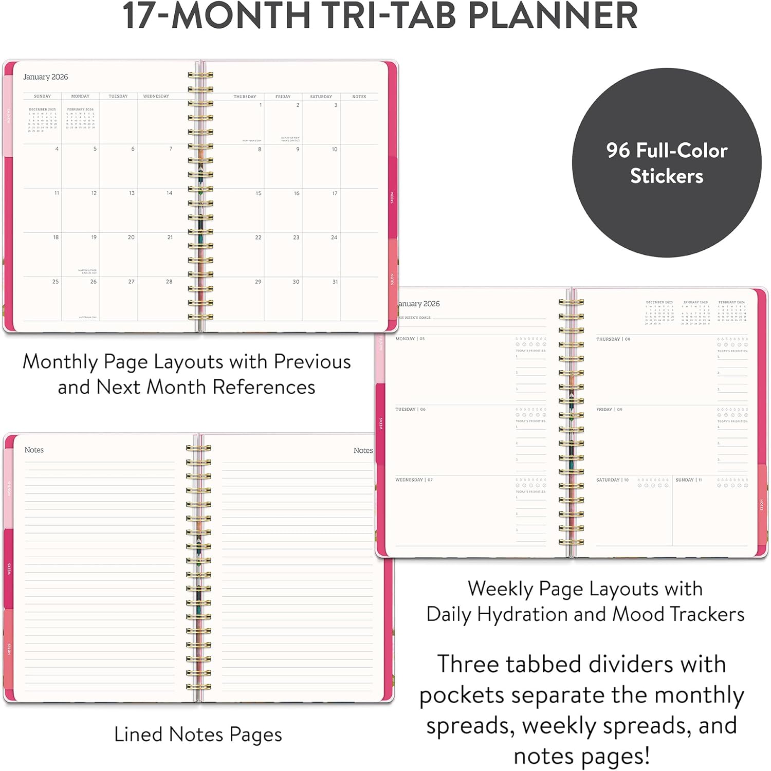 - EFFICIENT ORGANIZATION: This 17-month planner (August 2025 to December 2026) includes monthly and weekly views, plus note-taking pages, offering an organized approach to managing a busy schedule.