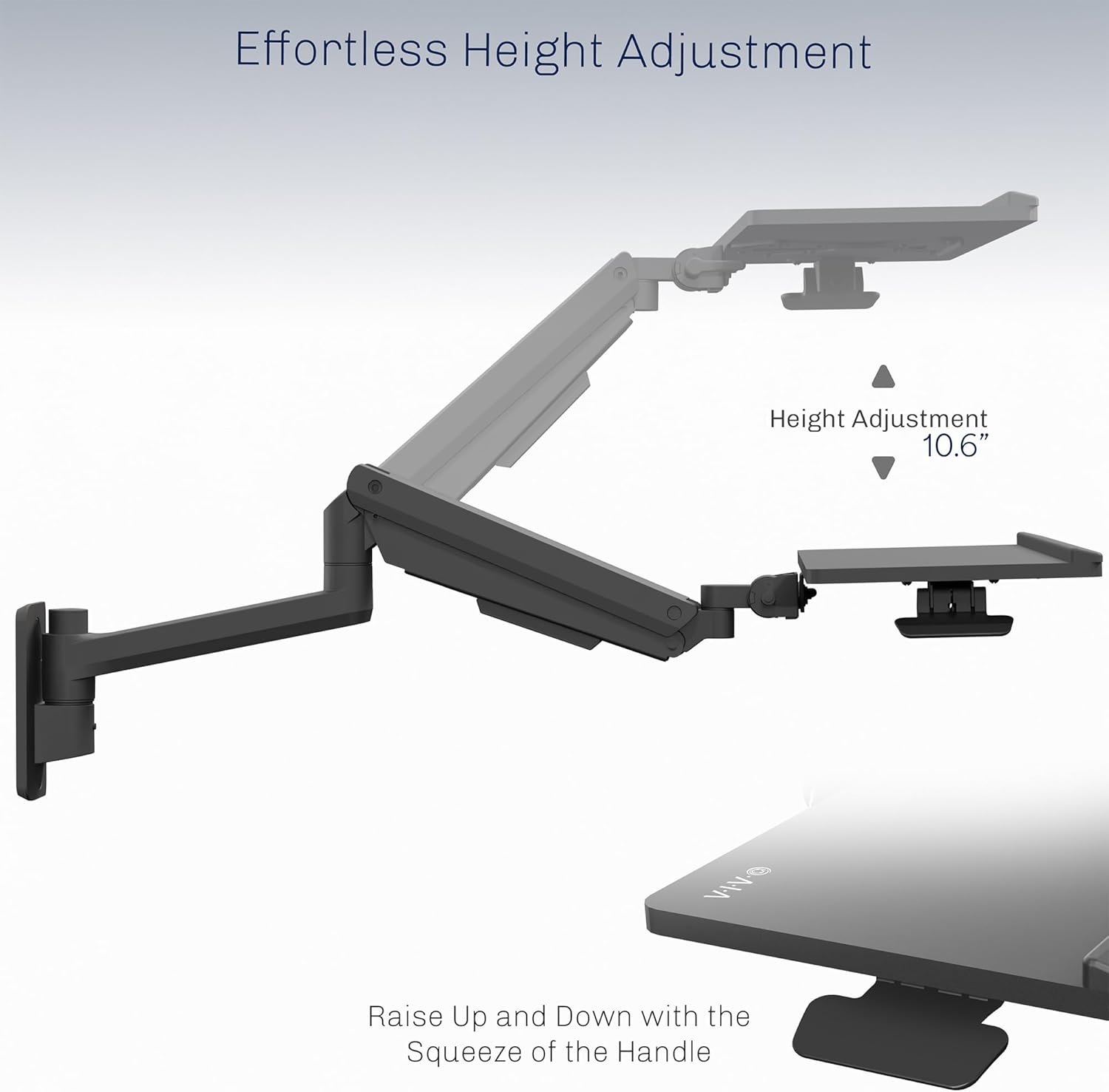 VIVO Sit-Stand 24 Inch Pneumatic Spring Keyboard and Mouse Tray Wall Mount, Counterbalance Height Adjustable Typing Platform, Ergonomic Tilt, Black, MOUNT-KB35C