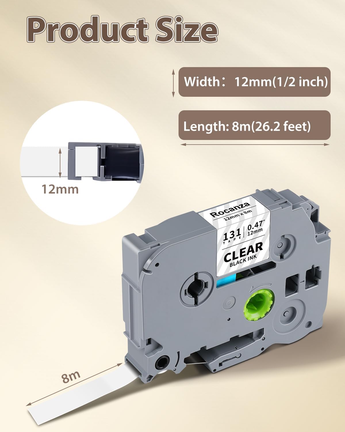 - Industrial-Strength Durability – This tze-131 clear label maker tape withstands water, corrosion, temperature extremes (-30°C to 120°C) and daily wear. Perfect for both indoor and outdoor applications where clarity matters