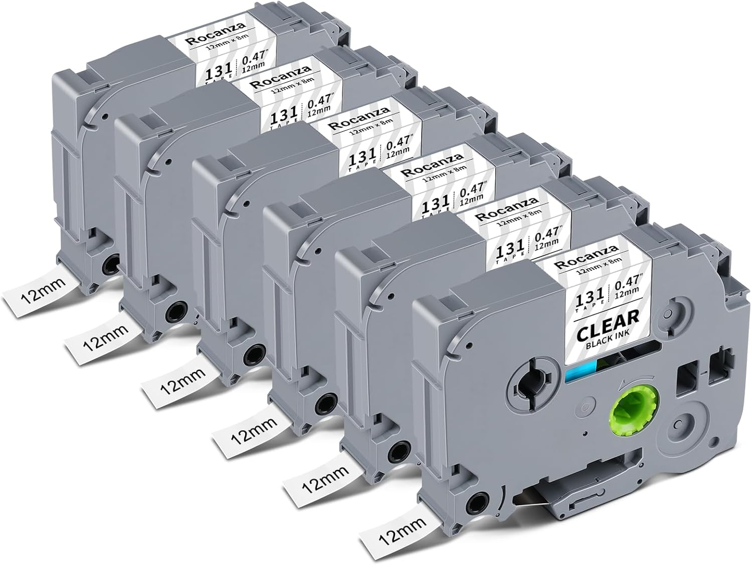 - 6-Pack Value Clear Label Tape TZe-131 – Compatible with PTH110, PTD200, PTD220, PTD210, PTD400, PTD400AD, PTD450, PT1230PC, PT1280, PT1280SR, PT1290, PT1880, PT2030, PT2030VP, PT2430PC, PTP700, PTP750W, PTD600, PT-2730, PT-2730VP, PT-1010, PT-1010B, PT-1010NB, PT-1010R, PT-1010RDT, PT-1010S, PT-1090, PT-1090BK, PT-1100, PT-1120, PT-1130, PT-1160, PT-1170, PT-1180 and more