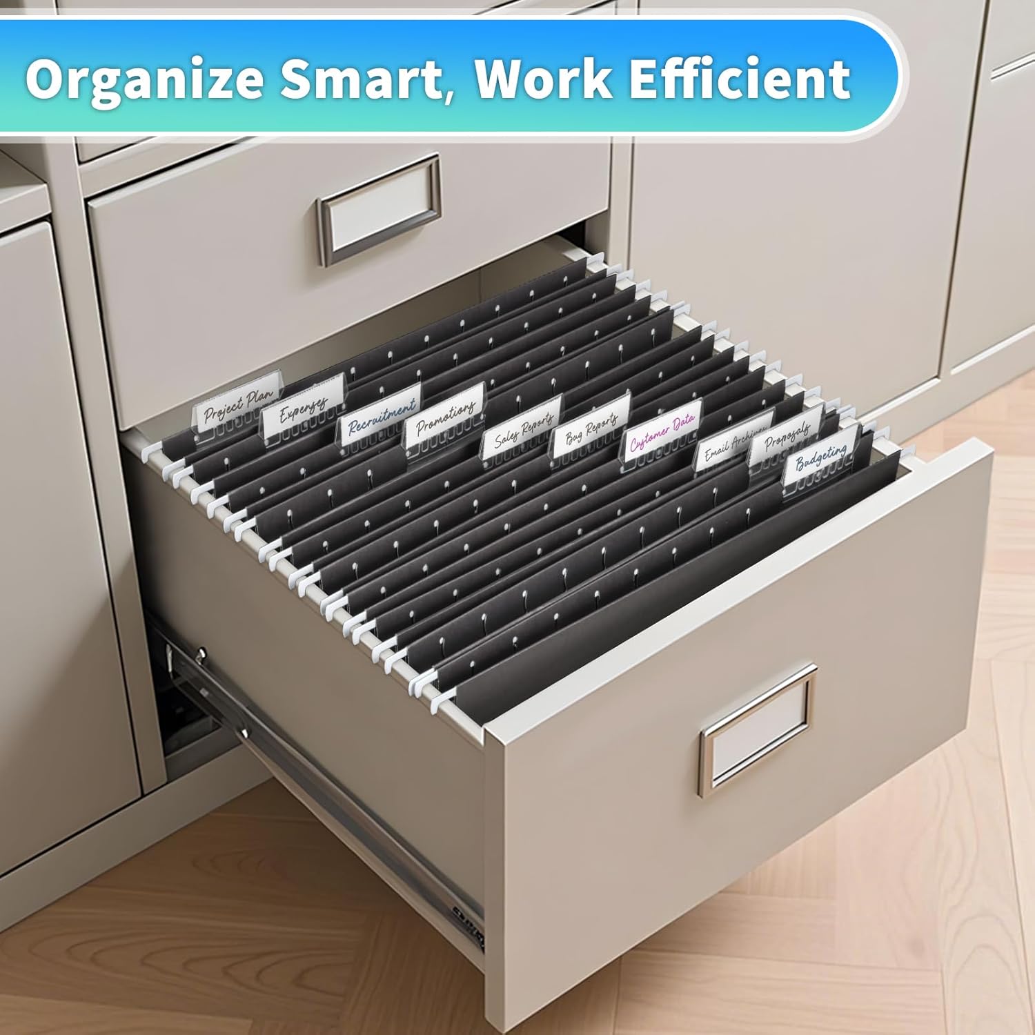 25-Pack Black Hanging File Folders, Letter Size (8.5" x 11Inch), Includes 35 Transparent Label Cards & 50 Sticker Labels,1/5-Cut Tabs for Home & Office Organization