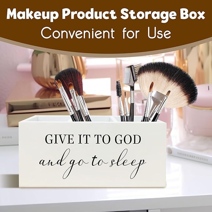 Give it To God and Go To Sleep Christian Sign Pen Holder for Bedroom Decor Desk Shelf, Prayer Sign Christian Gifts for Women Religion Decor Wooden Pencil Organizer