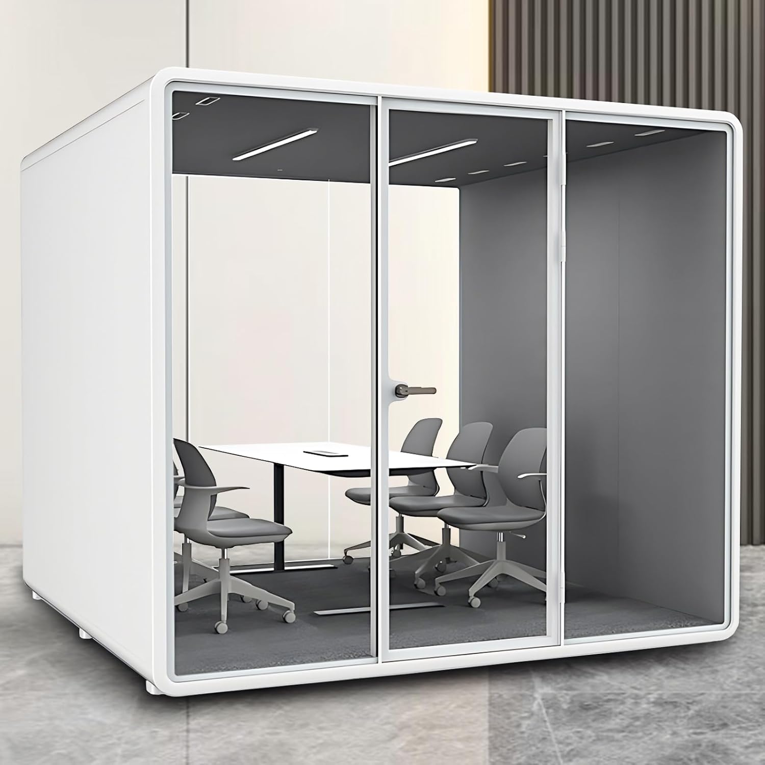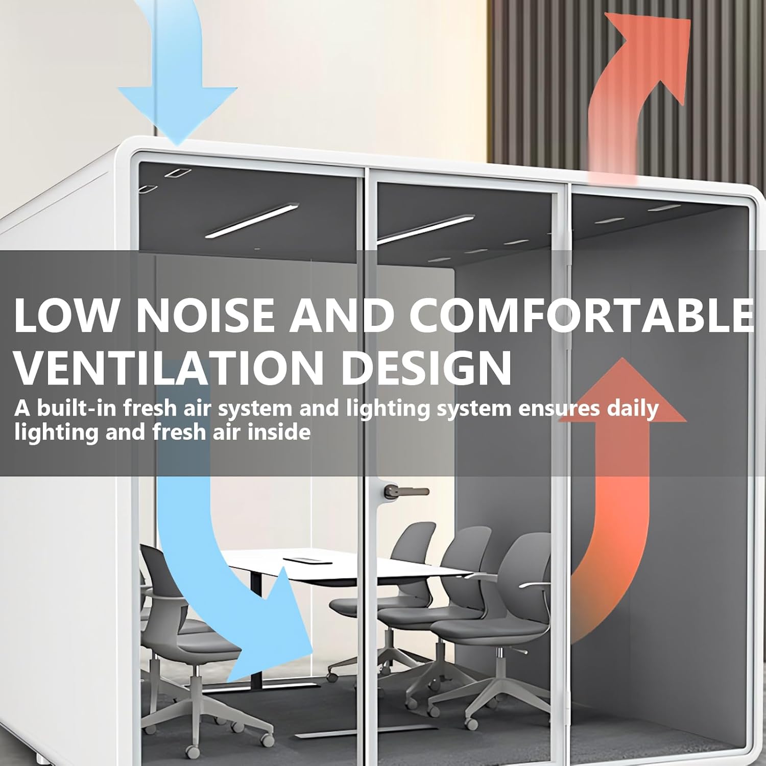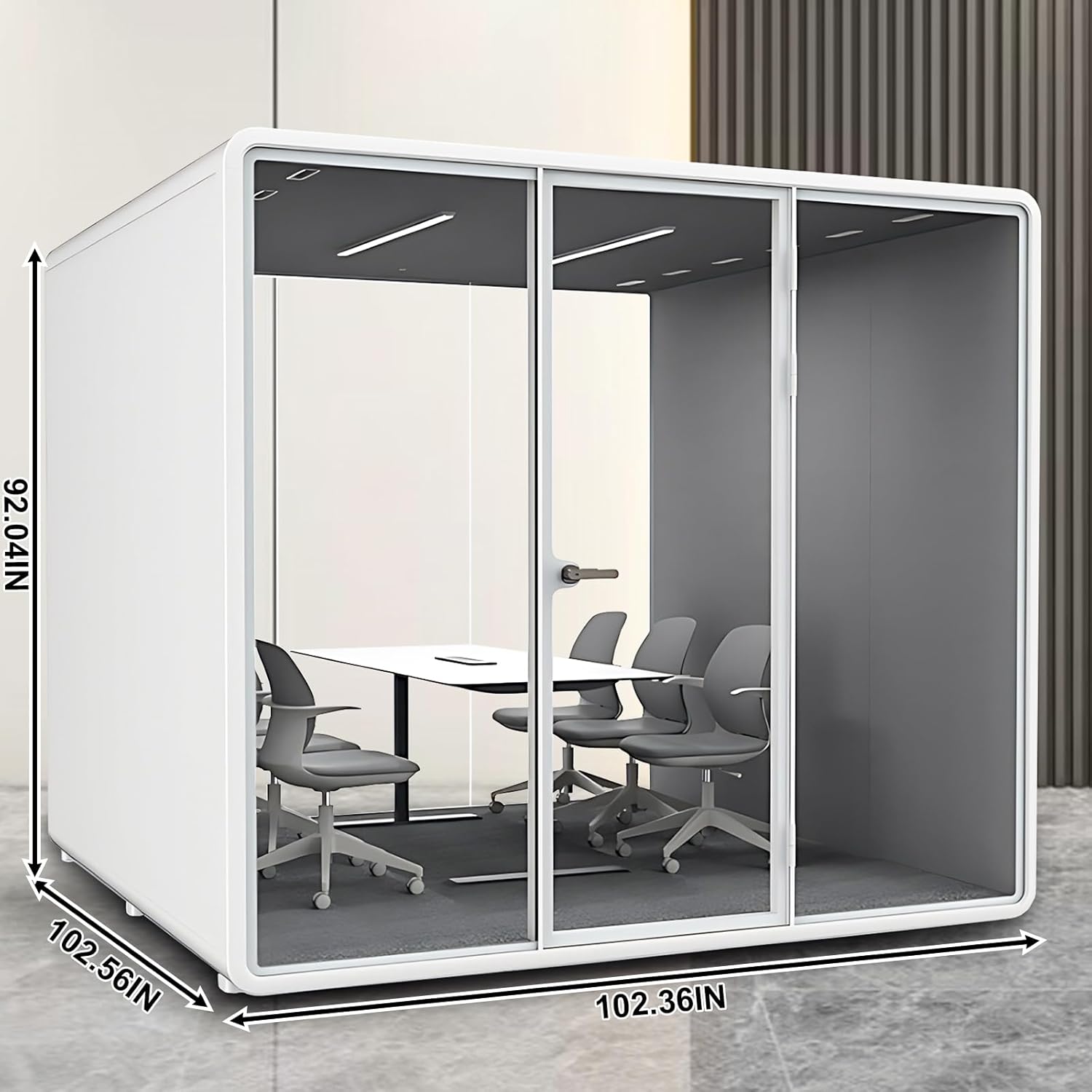 Office Sound Booth with Audio Privacy - Portable Soundproof Booth Includes White Frame with Curved Corners,Soundproof Room with Light,Fans, Magnetic Door Lock for Meeting Room (102.36IN)