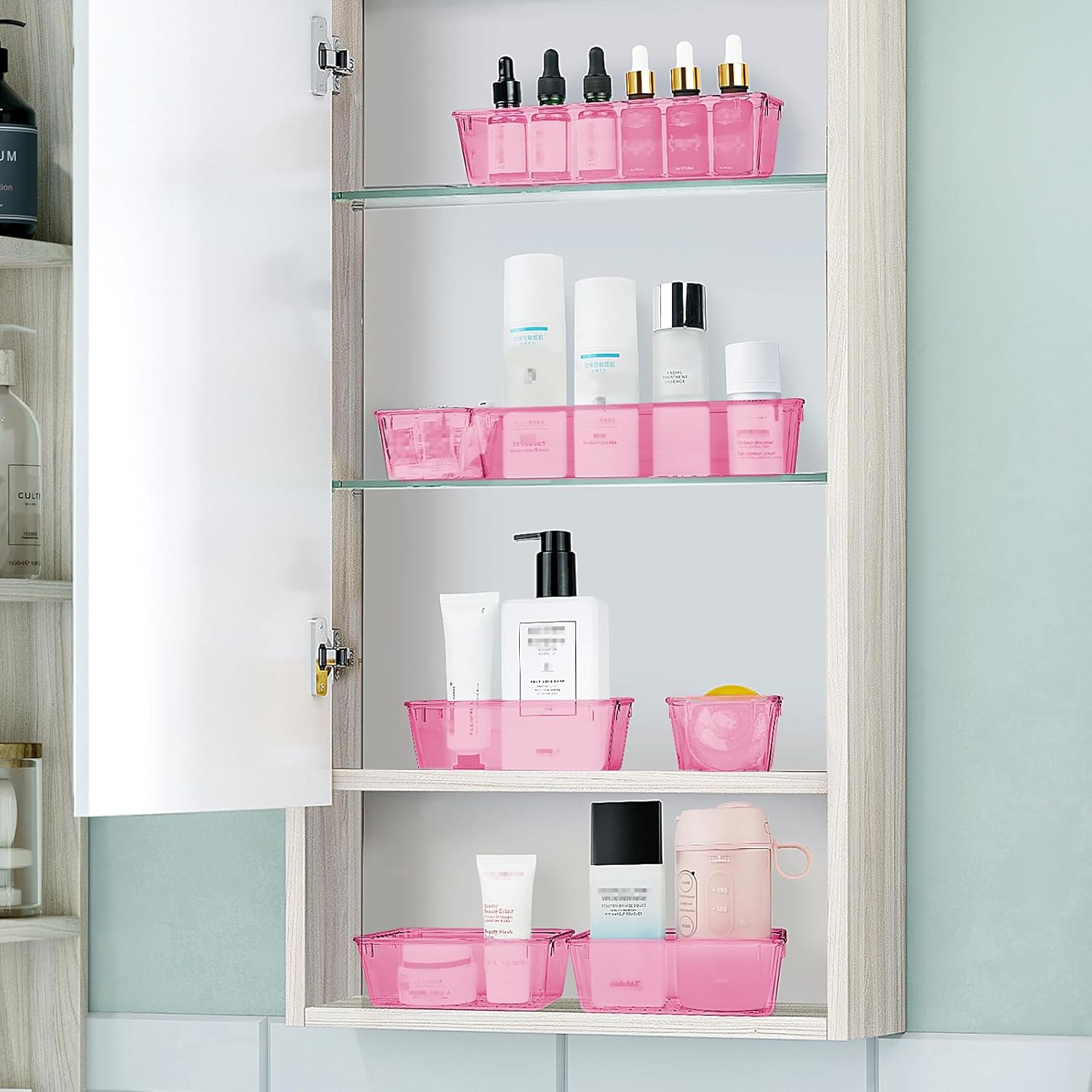 - 4 Combinations of Different Sizes: A set of cabinet organizer includes 25 storage bins of 4 different sizes. Includes: 9 x 6 x 1.8 inches (3pcs), 9 x 3x 1.8 inches(6pcs), 6 x 3 x 1.8 inches(8pcs), 3 x 3 x1.8 inches(8cps).