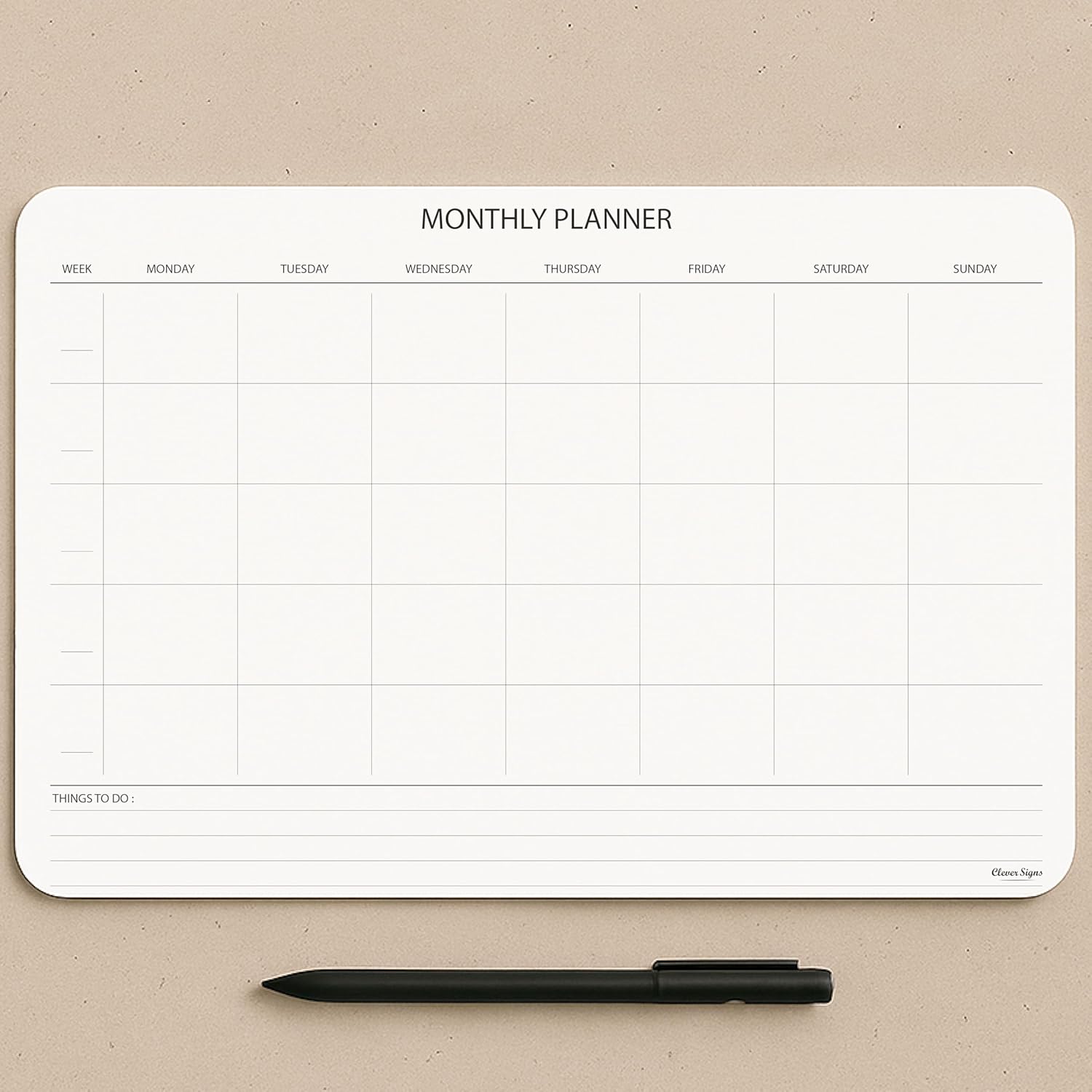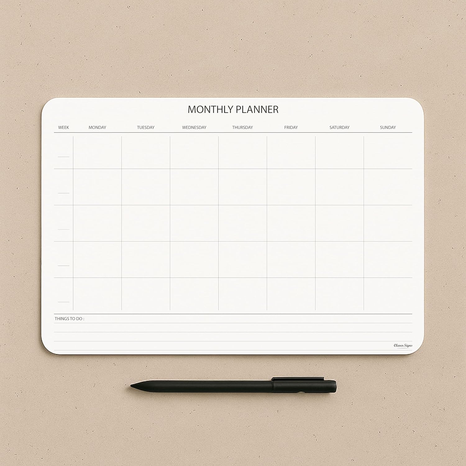 - CONVENIENT FORMAT: Sheets are designed to be clear and easy-to-use. The hard back cardboard support provides a sturdy surface for writing. CLEVER SIGNS Undated Monthly Planner Notepad measures 8,3 X 11,7 inches and is made with high-quality thick paper.