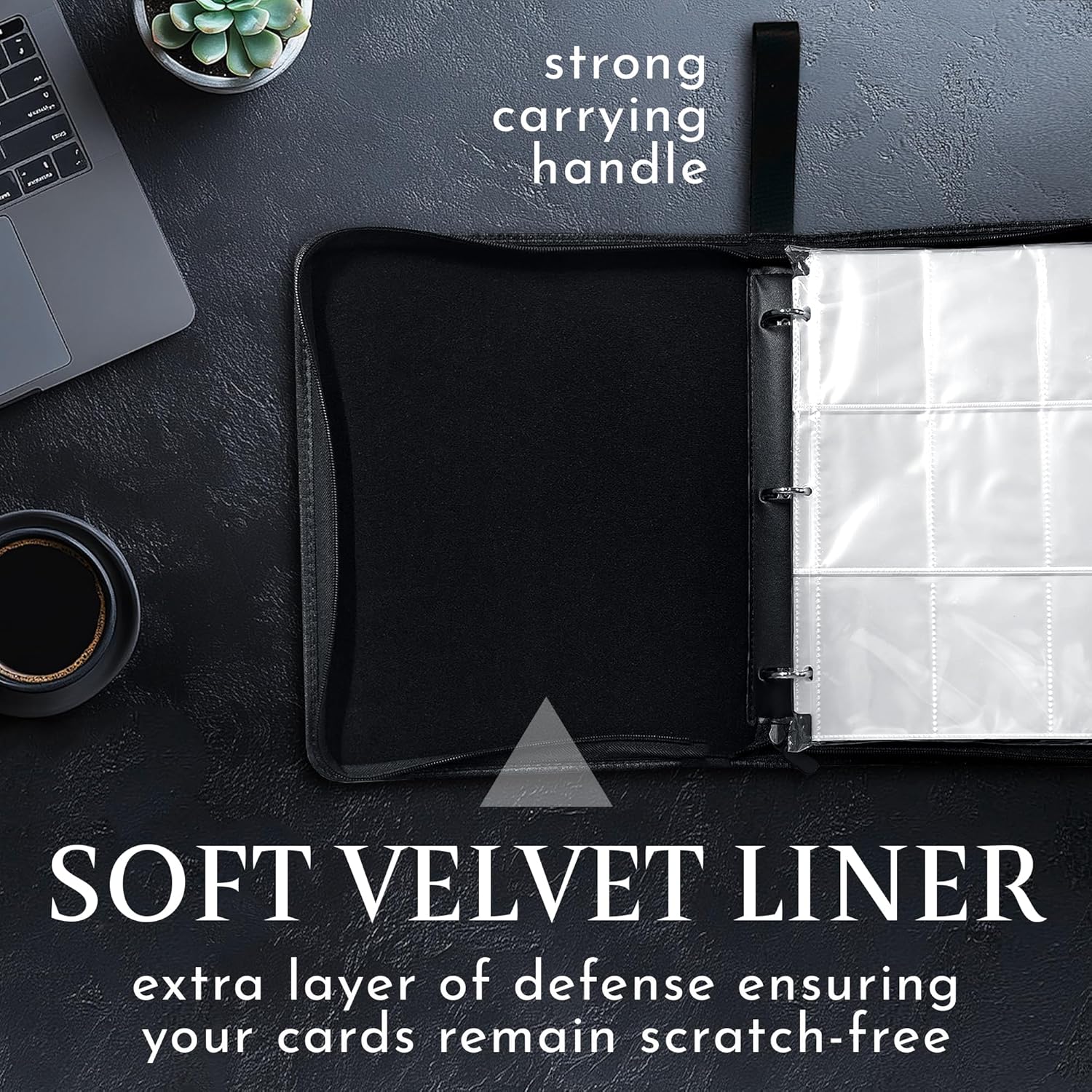 - [ Velvet Lined Interior for Extra Protection ]: Designed with a soft velvet liner, this binder ensures your cards remain scratch-free. The luxurious interior adds an extra layer of defense, preserving card condition and making it a must-have for serious collectors.