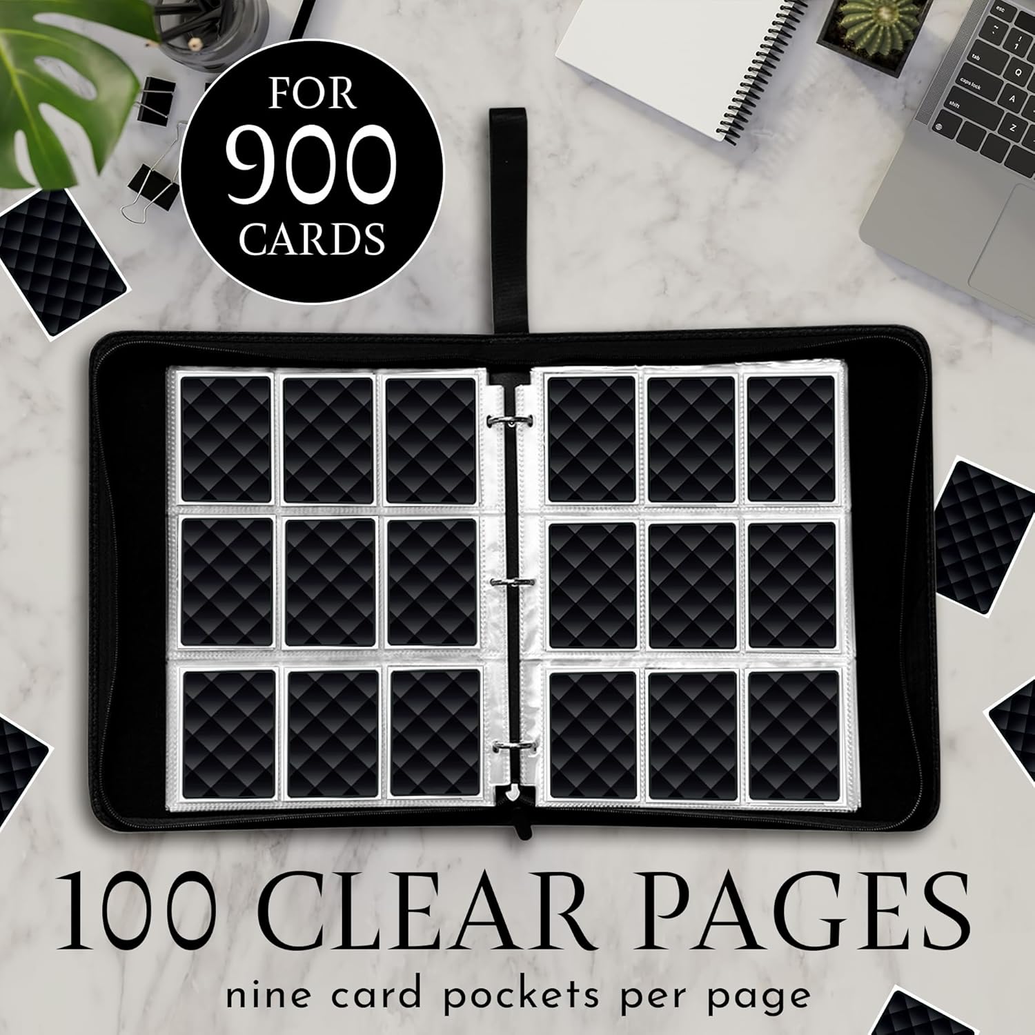 - [ Massive 900-Card Capacity ] : This trading card binder measures 13" x 10.5" and includes 50 double-sided 9-pocket sheets, securely holding up to 900 standard-size cards. Organize and protect your valuable collection with ample space for sports cards, TCGs, and more.
