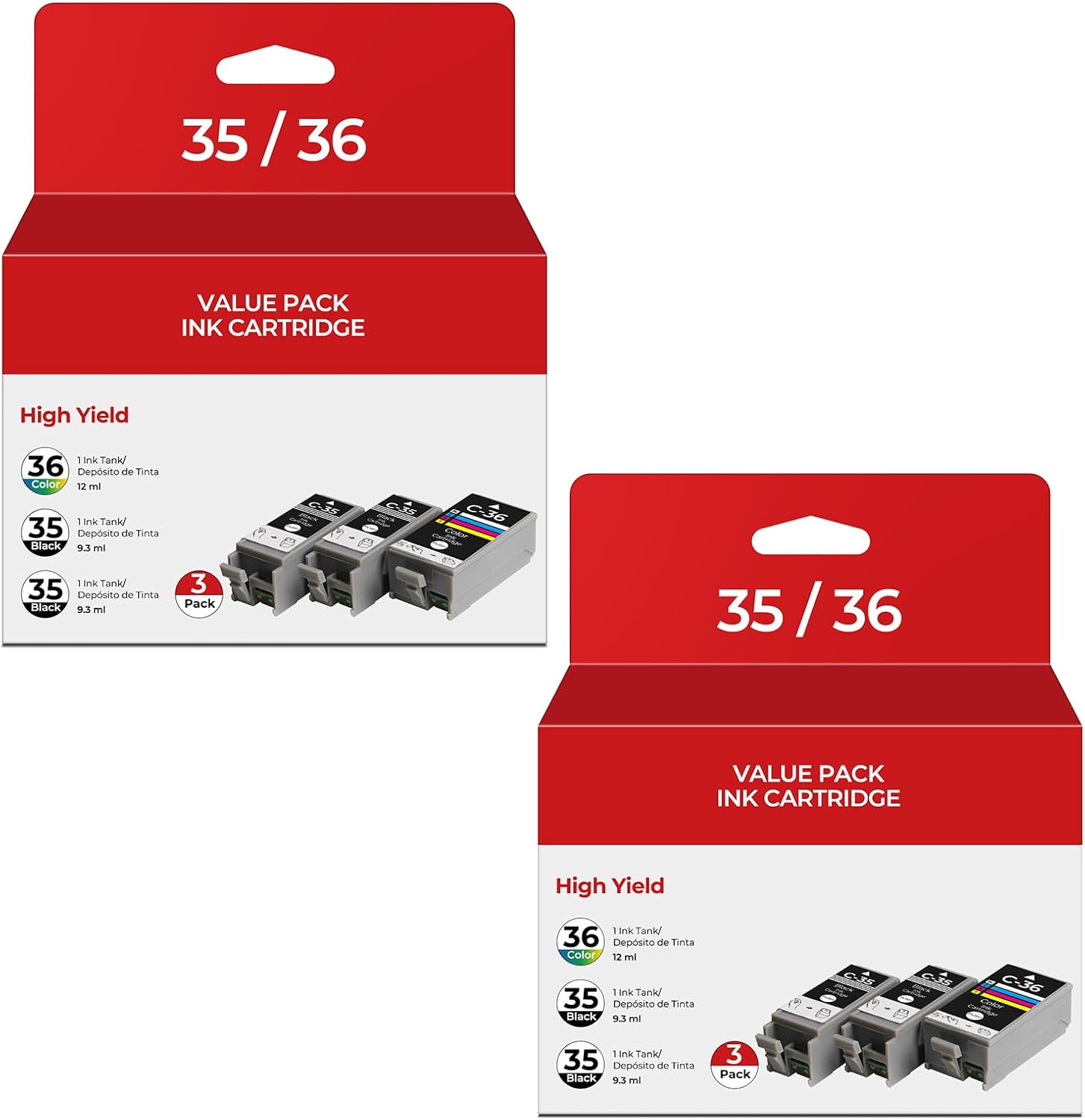 - 35 36 Ink Cartridges Black Color Combo Pack Page Yield: PGI-35 Black is 250 Pages per PGI-35 Ink Cartridges, CLI-36 Color is 300 Pages per CLI-36 Ink Cartridges, assuming a 5% coverage on A4 paper