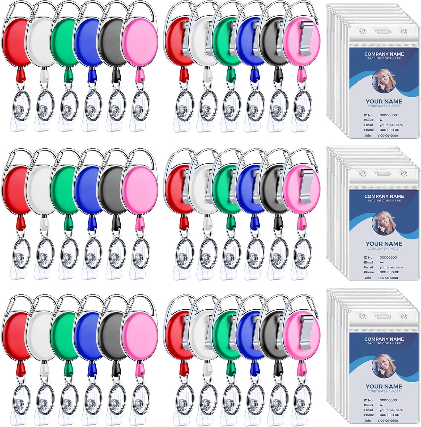 - Package Includes: you will receive 60 pieces of heavy duty retractable badge reels and 60 pieces of vertical clear ID card holder, enough quantity for your replacement needs, and you can share them with your friends, family, and colleagues