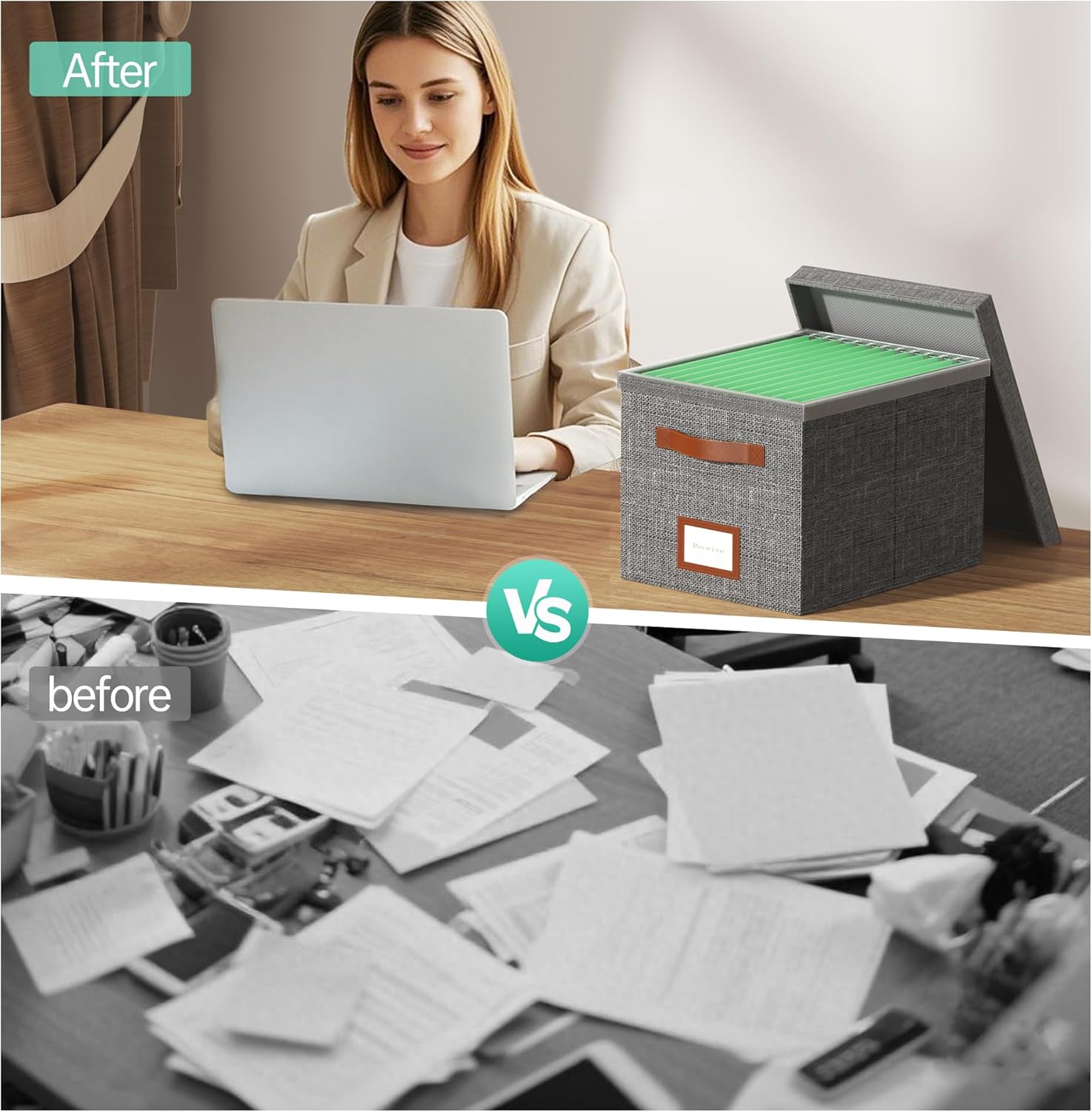- [Foldable Design, Save Space]- The file storage box adopts an innovative foldable design. When it is not needed, it can be easily folded into a flat shape for easy storage and carrying. This design not only saves valuable space, but also makes the storage box more flexible and convenient when moving or temporarily using it.