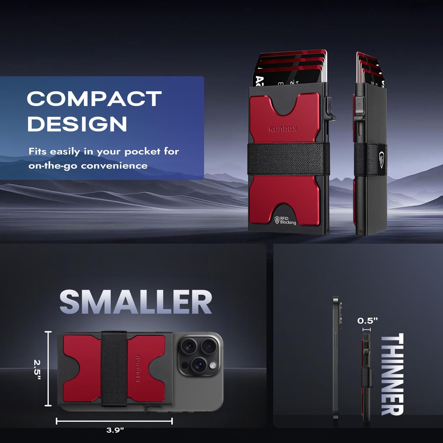 - Quick Access & Expandable Capacity (Holds 1-12 Cards): Experience effortless card access with our patented pop-up button mechanism – press to instantly eject cards. The main aluminum card holder compartment holds 4-6 cards(depending on embossed designs), while the expandable metal backplate adds 6-8 extra slots. *Total capacity varies with card thickness