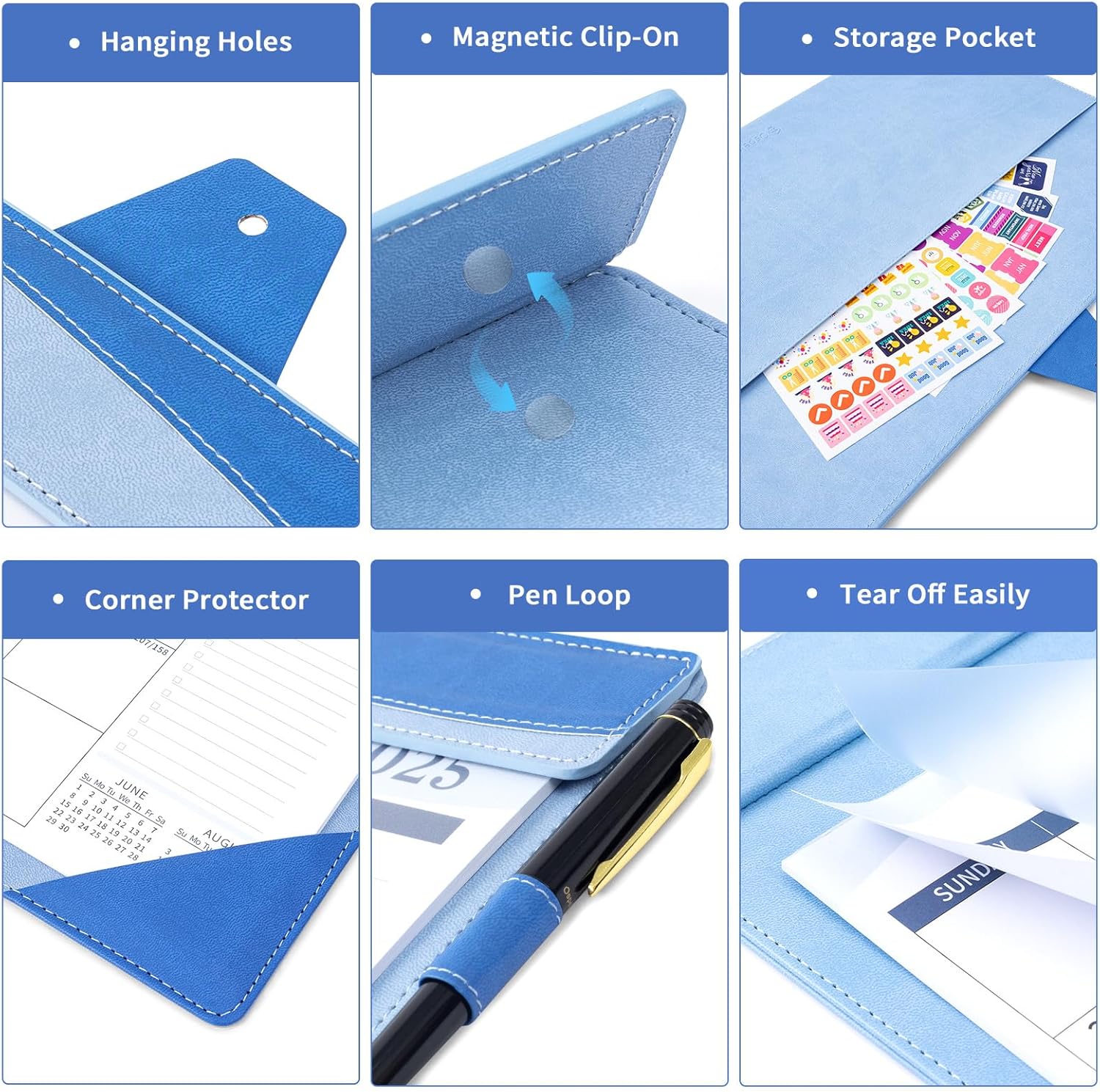 - Durable and Functional Use: Plastic cover can protect the calendar from dust and water pollution;the corner protectors can make the page corner of the calendar not easy to fold. Featuring a dedicated slot for pens, this functional loop keeps your favorite writing tool neatly stored and always within reach.