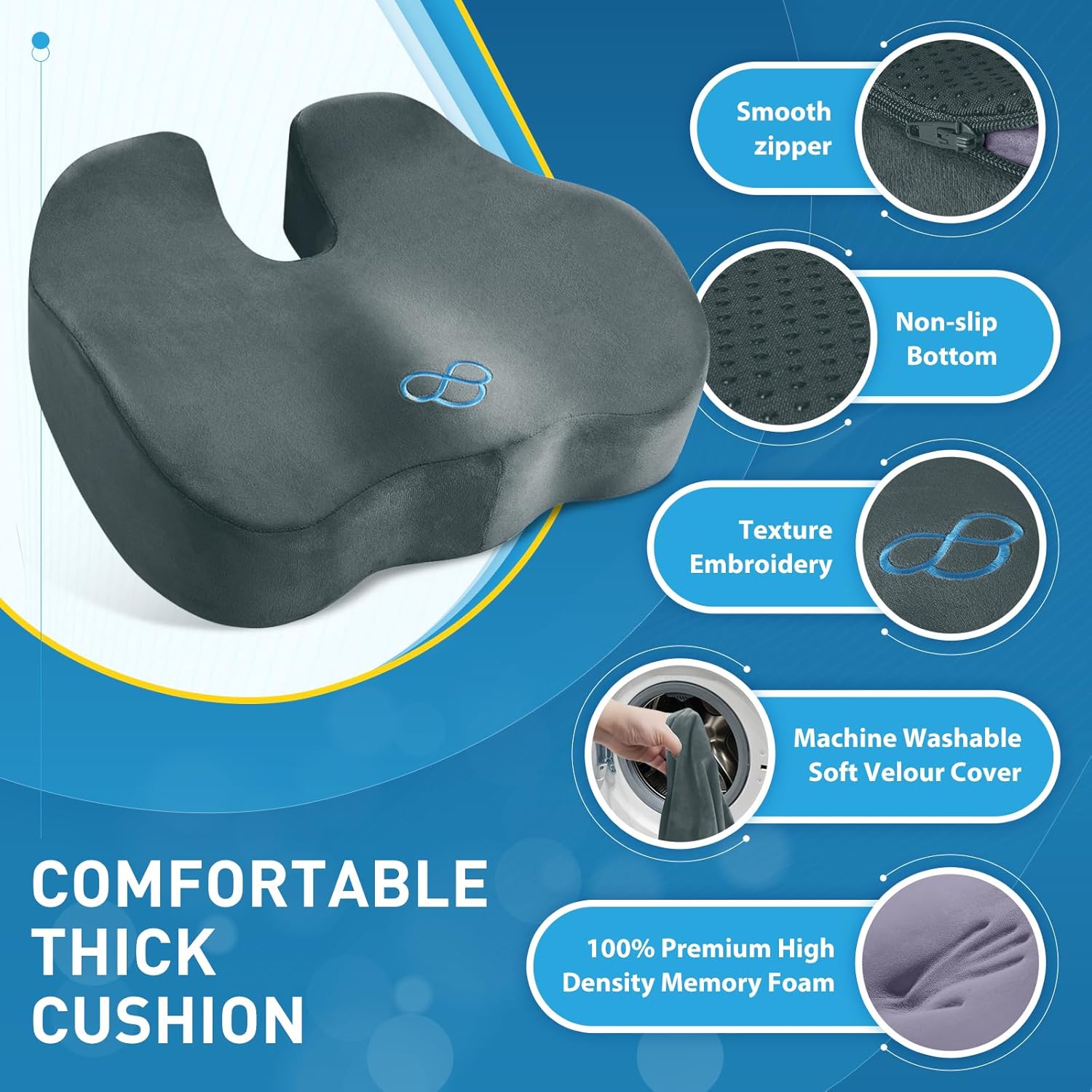 BlissTrends Seat Cushion,Thick Memory Foam Cushions for Office Chair, Car Seat, Airplane, Relieving Pressure Tailbone Sciatica Back Pain for Office Workers, Car Drivers 4.7in Thick DarkGreen