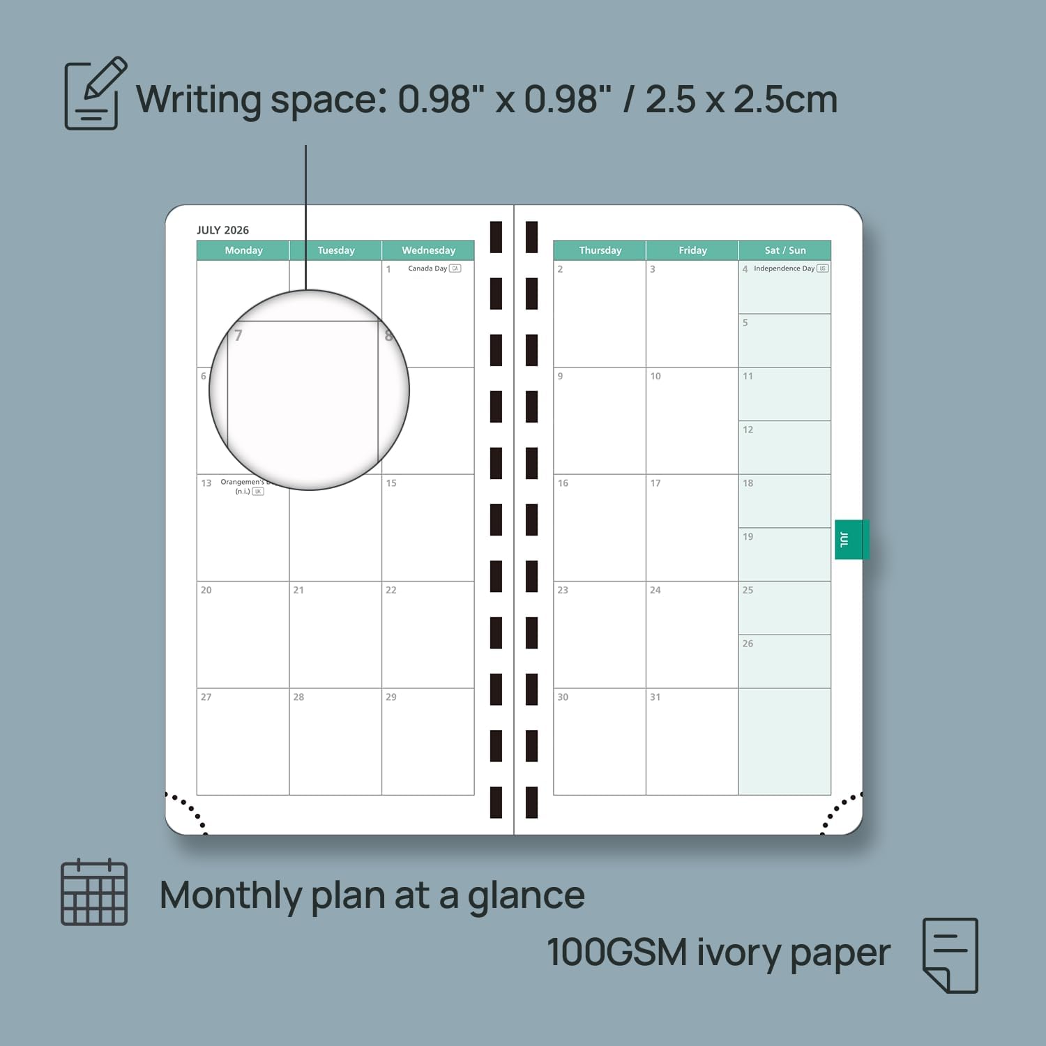 - POCKET SIZE - The size is 3.5" x 6.5", small planner for purse, comfortable to carry and use. This planner covers the entire year of 2026 to keep your busy daily routine organized.