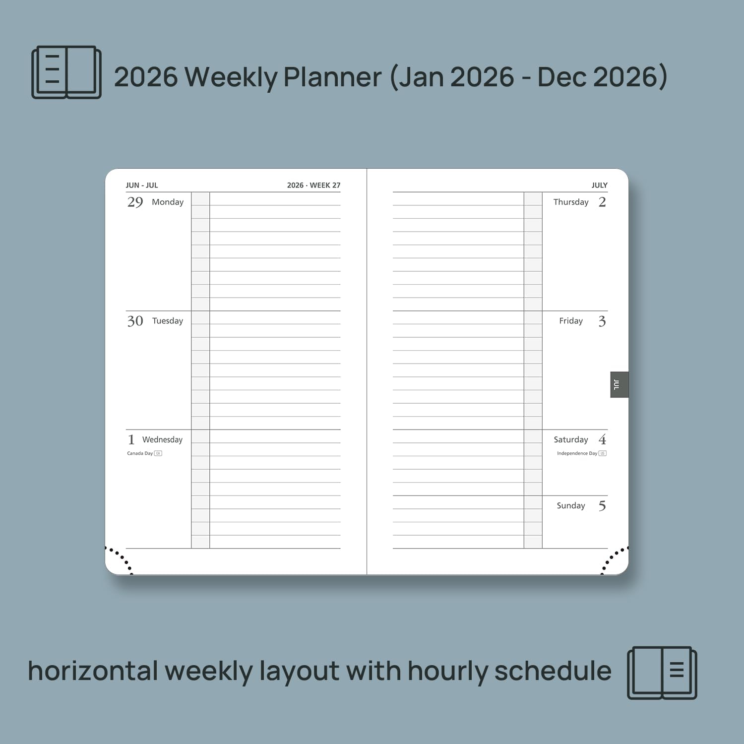 - JAN 2026 - DEC 2026 WEEKLY PLANNER: This planner covers 12 months of 2026 so that you can track the whole year's schedule easily. The size is Pocket 4" x 6.25", It is roughly equal to a moblie phone in height but with a wider width, which is comfortable to carry and use.
