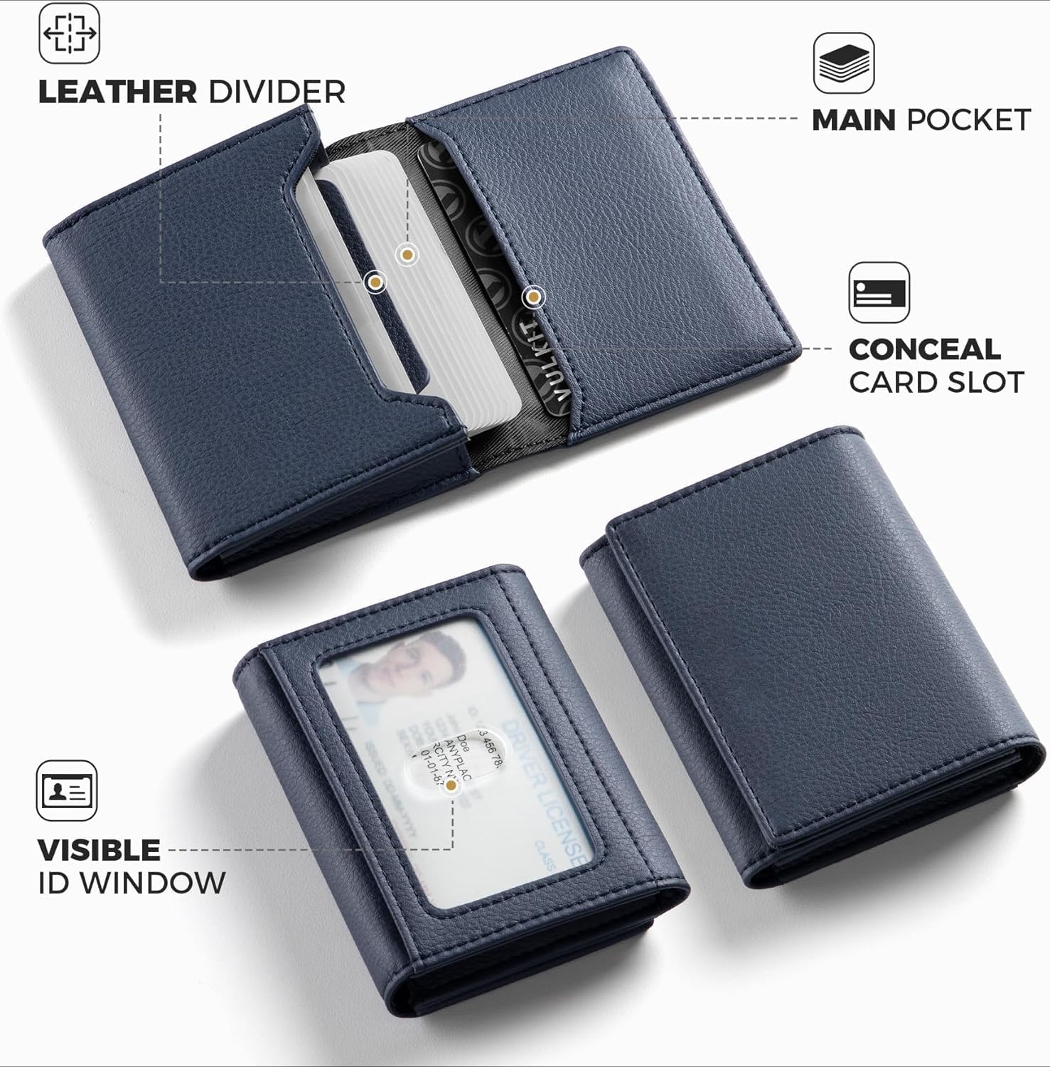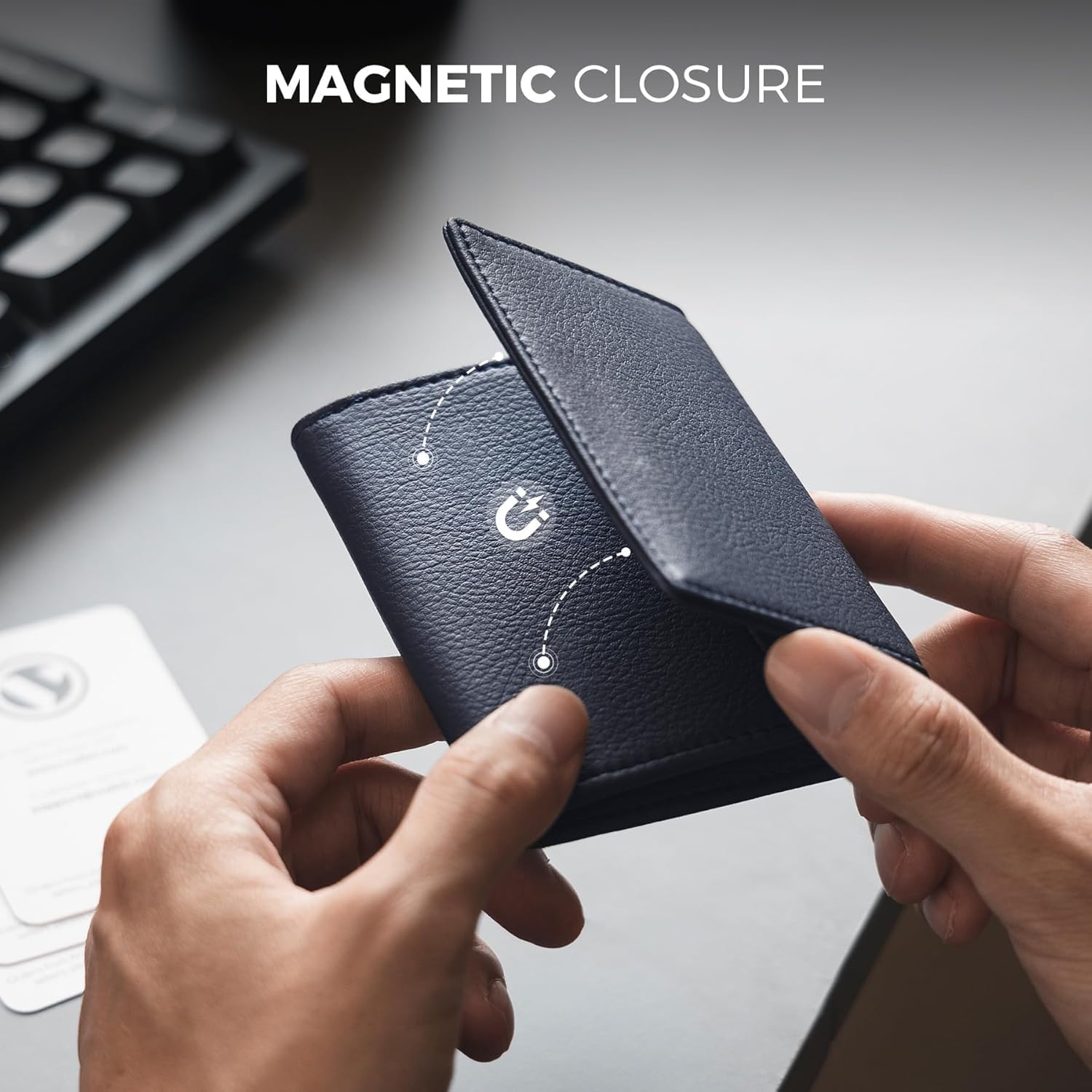 Real Leather Business Card Holder Premium RFID Blocking Card Case with ID Window and Magnetic Closure Holds Up to 40 Business Cards (Grain Navy)