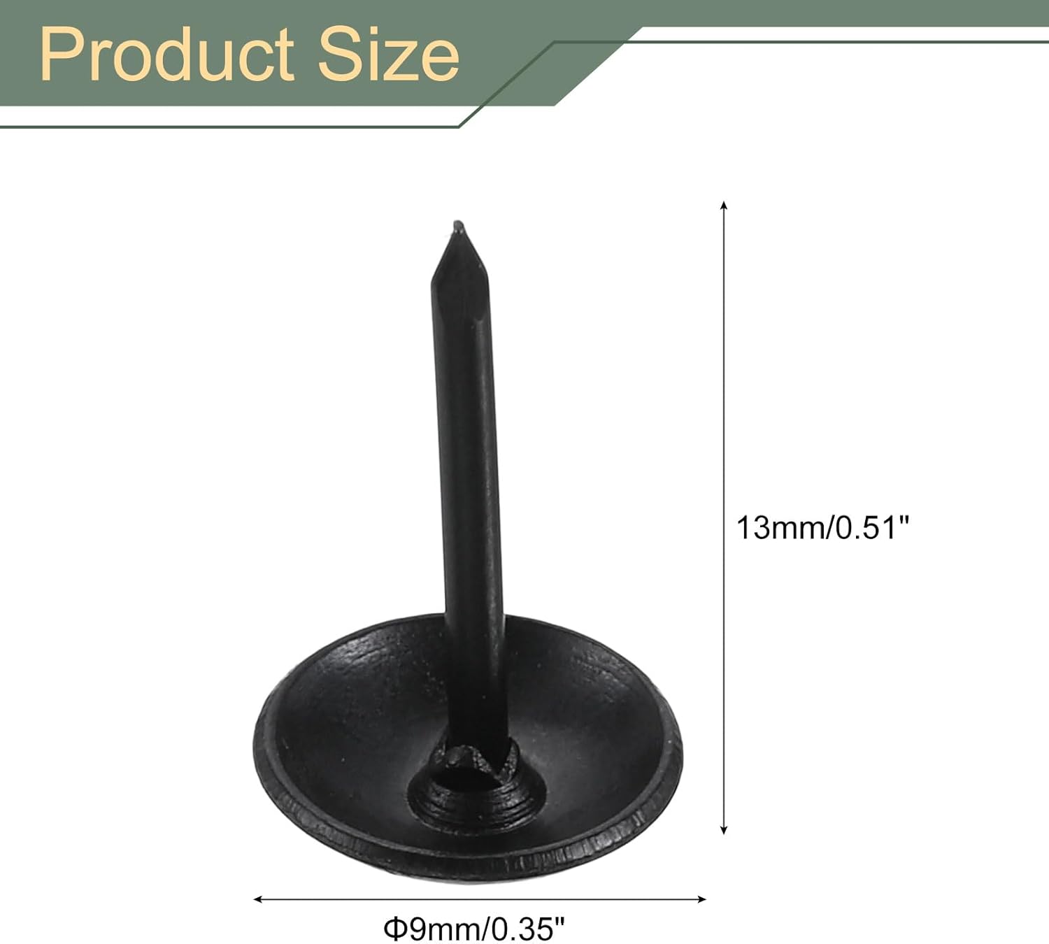 uxcell 100 Pcs Upholstery Tacks, 9 x 13mm Round Head Upholstery Nails Pins Vintage Decorative Furniture Tacks for Chairs Sofas Beds DIY Project, Black
