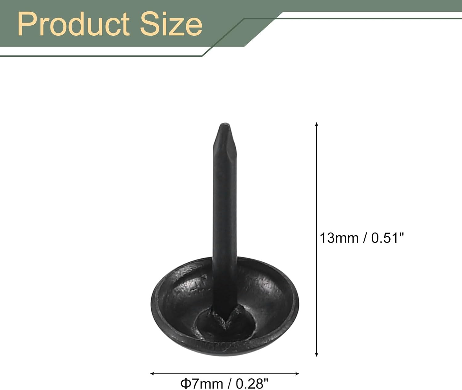 - What You Get - The package comes with 100 pieces of upholstery tacks, with the total height is 13mm/0.51inch, the head diameter is 7mm/0.28inch.