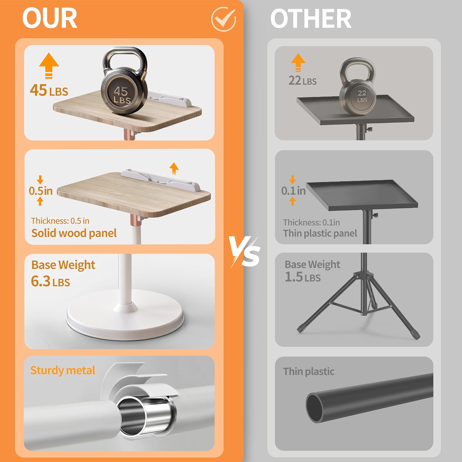 - Rock-Solid Stability: Constructed from durable metal, this laptop stand holds up to 45lbs without tipping. Built to last, it's ideal for heavy laptops, projectors, and more. Place your equipment with confidence—it's secure and stable.