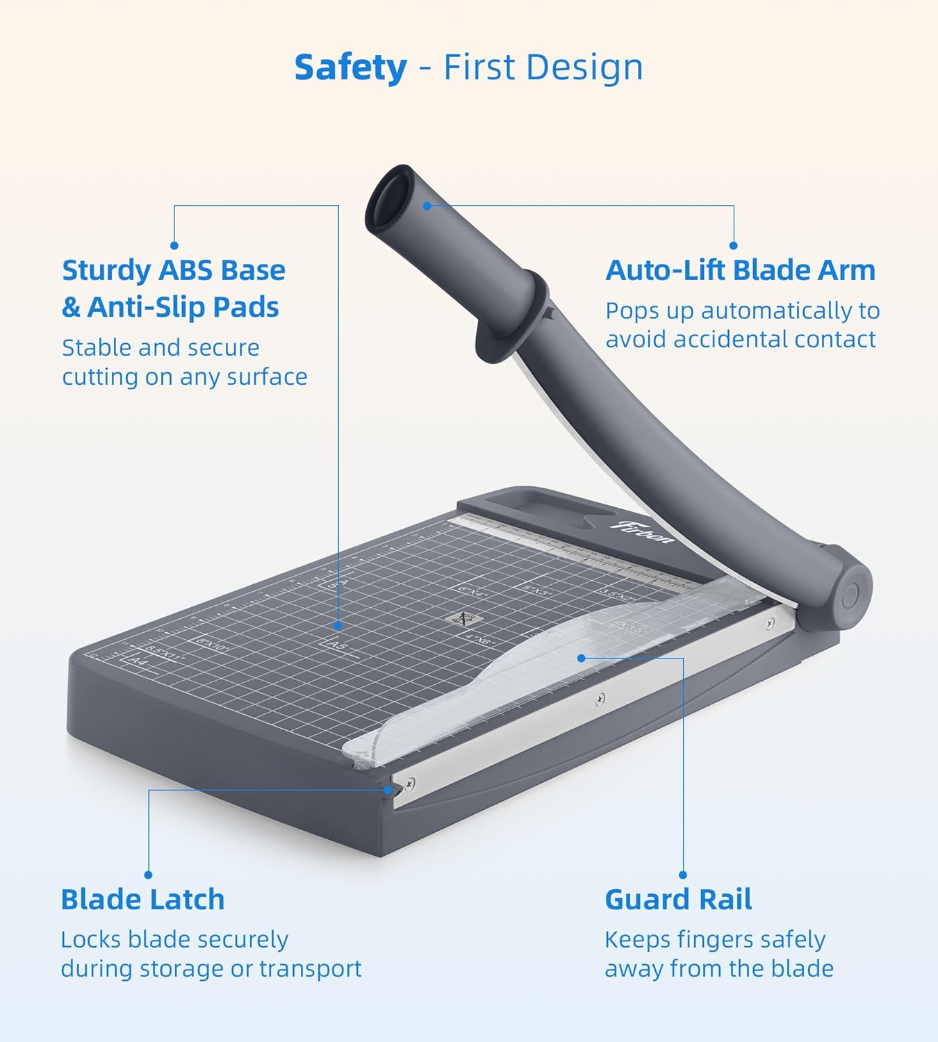 - Cuts up to 12 Sheets: This paper cutter easily slices through up to 12 sheets of 80 g/㎡ paper at a time. The 12" cut length supports A4, A5, B5, B6, and other sizes, perfect for home, office, school, or creative studio use