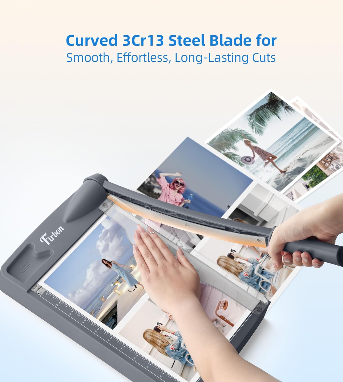 Firbon 12" Guillotine Paper Cutter, Heavy Duty 12-Sheet Capacity Trimmer for Cardstock, Photos, Scrapbooking, Office, Classroom, Studio (Gray)