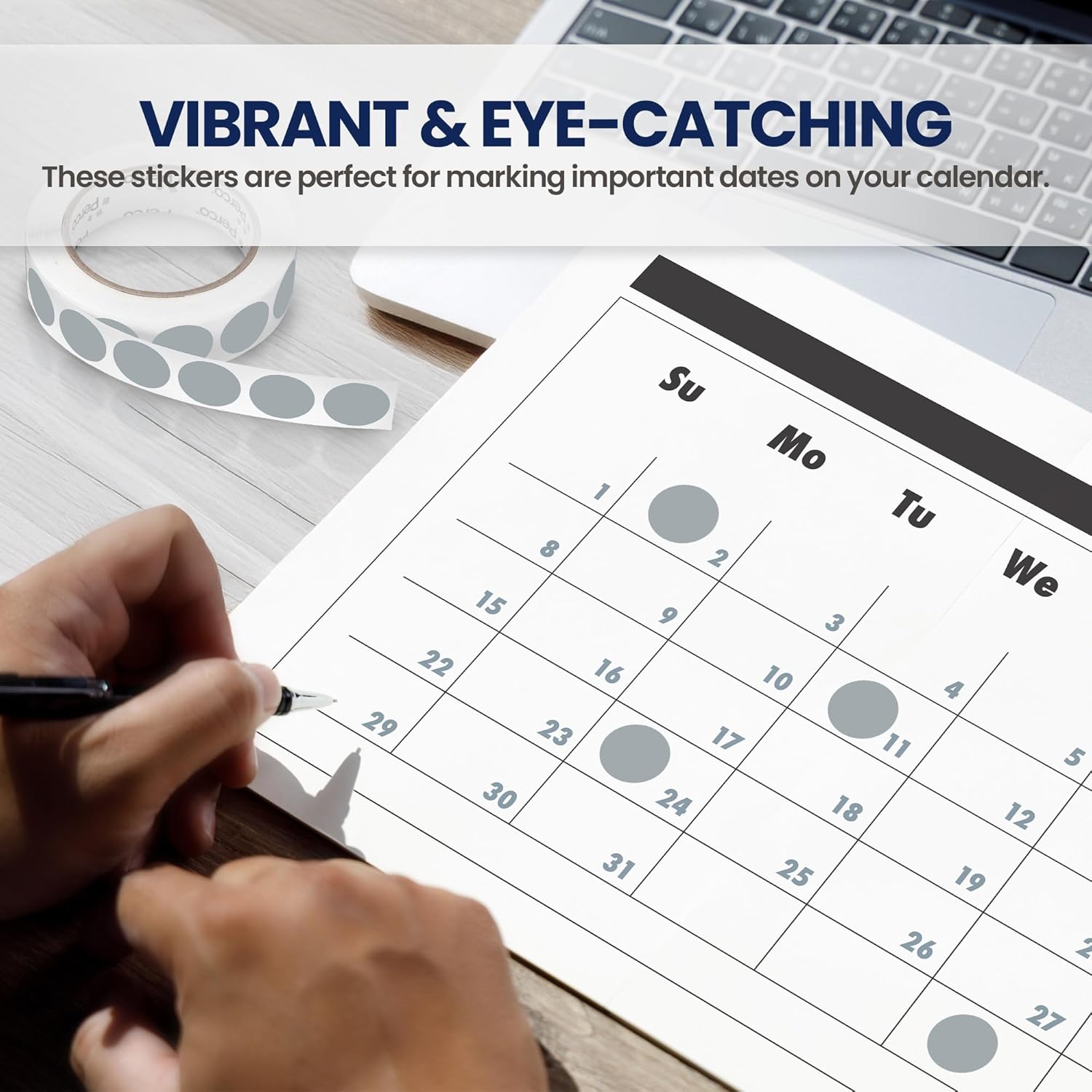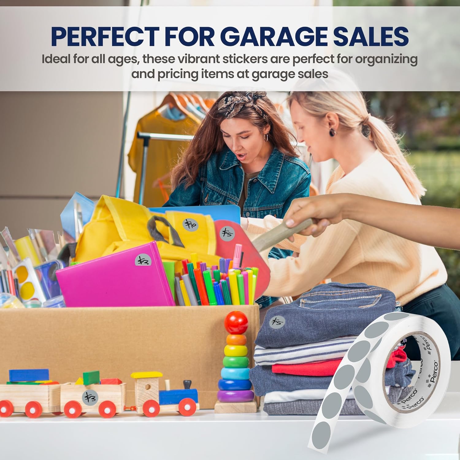Perco Grey 1-Inch Round Circle Dot Sticker Labels with Removable Adhesive – 1,000 Labels per Roll – Versatile, Vibrant Colors, Reliable Hold, No Residue, Perforated for Convenient Use – Made in USA
