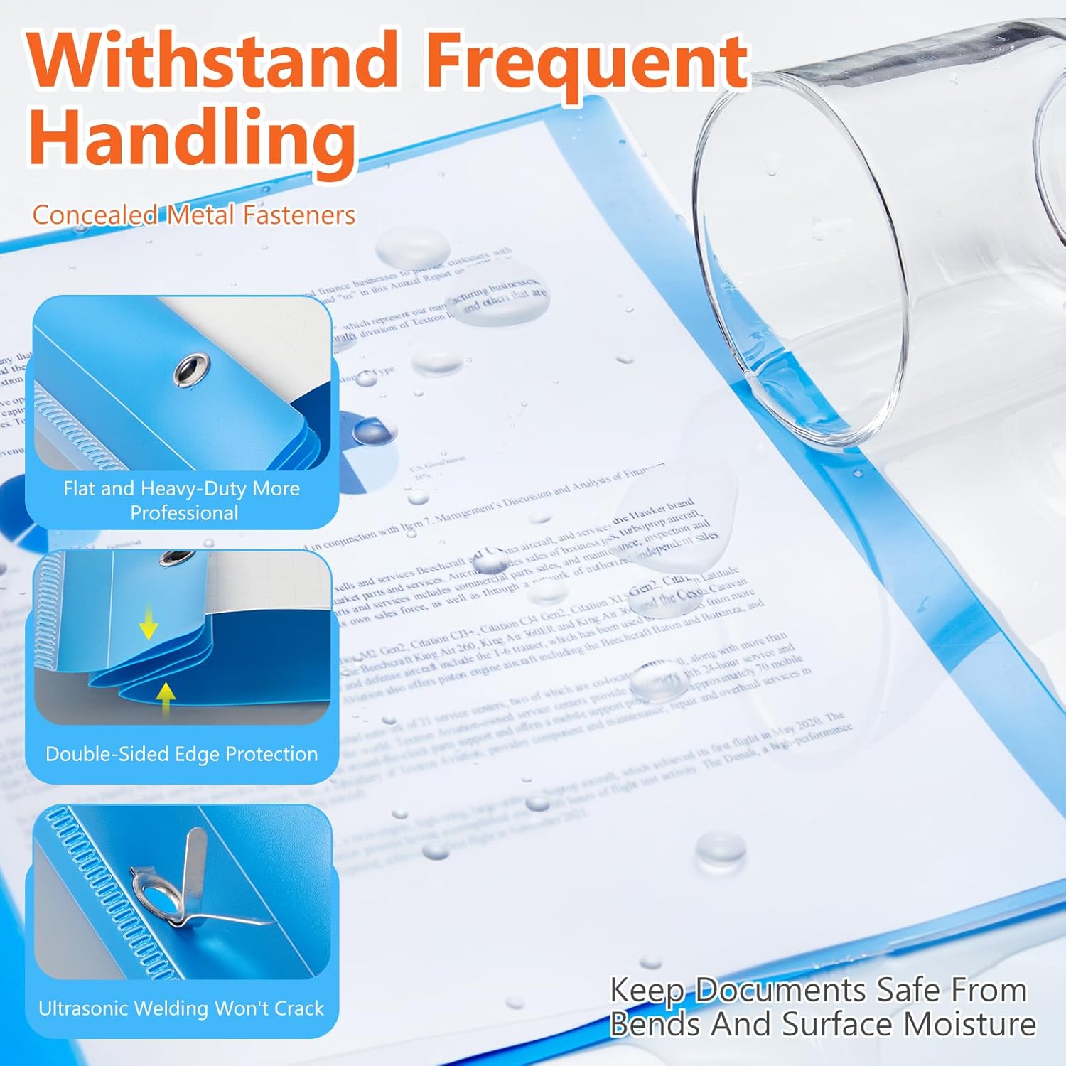 - Transparent and Scratch Resistant Cover Design: the report folders with clear cover enhances visibility and clarity, making it easier to identify documents; Made of polypropylene and resin, they are smooth, scratch resistant and not easy to bend, ensuring your documents remain safe and pristine