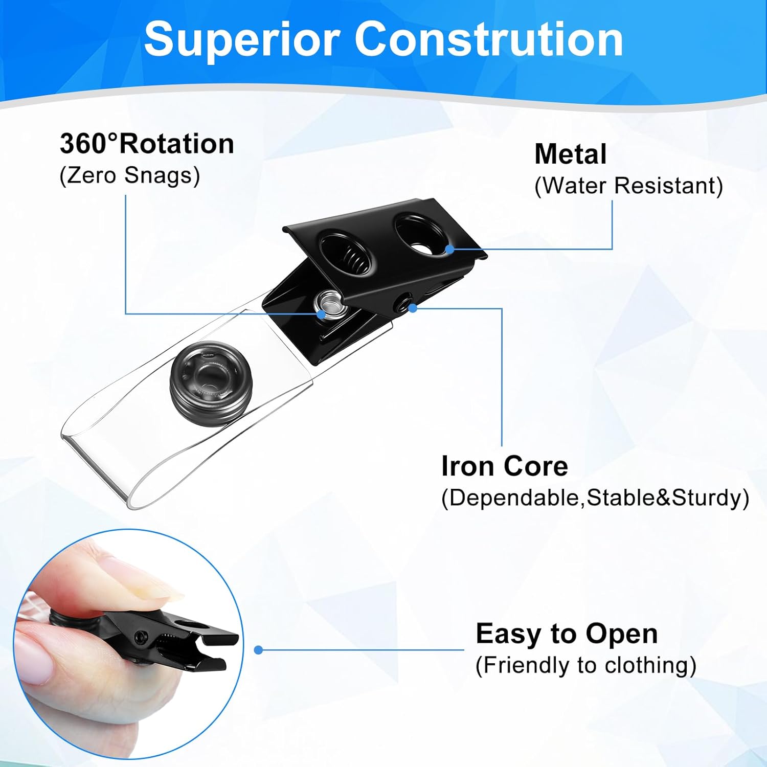 - Nice to your items: the heavy duty metal clips won't snag or starch your clothing and other fabric surfaces, nicely match your business shirt or suit; They are appropriate for conventions, seminars, office, trade shows, schools, security and more, proper for holding ID cards, business cards, name tags, badge holders, keys and so on