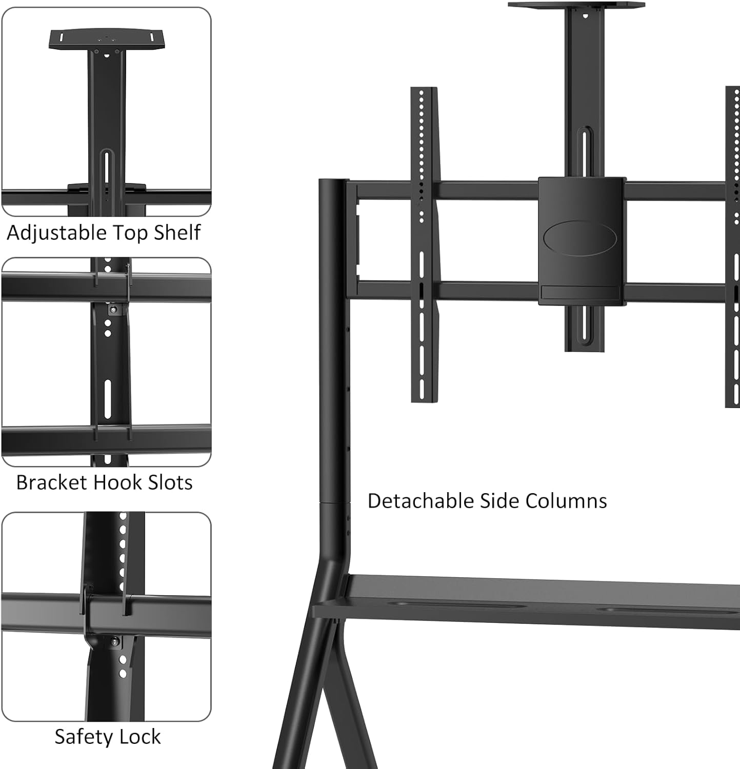 - Lockable Rolling Wheels: Equipped with lockable rolling wheels for effortless movement and secure positioning. Easily roll the stand to our desired location and lock it in place for stability