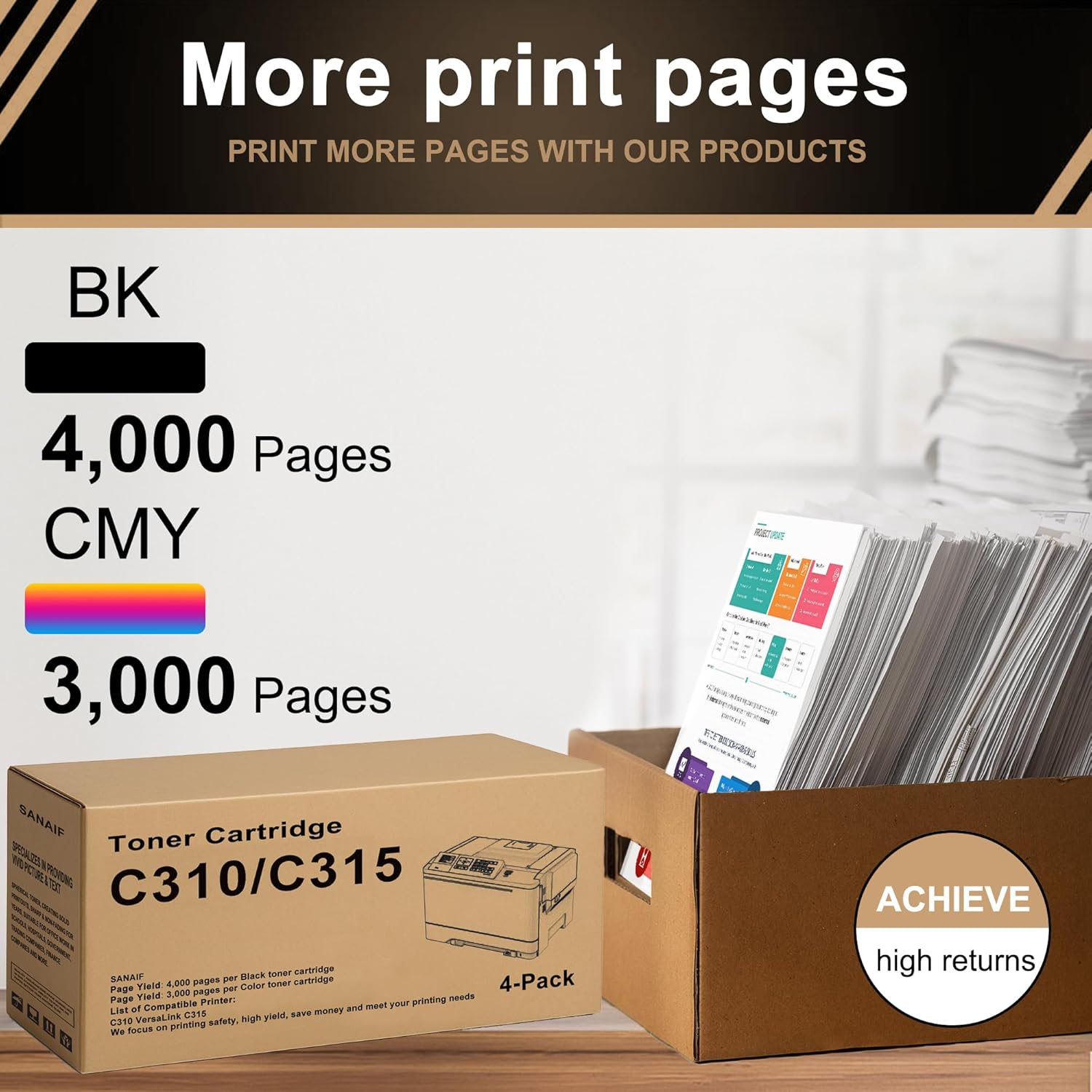 - Package Contents: Compatible Xerox SANAIF C310/315 high capacity toner cartridge Black Cyan Magenta Yellow 4-Pack (006R04356 006R04357 006R04358 006R04359)
