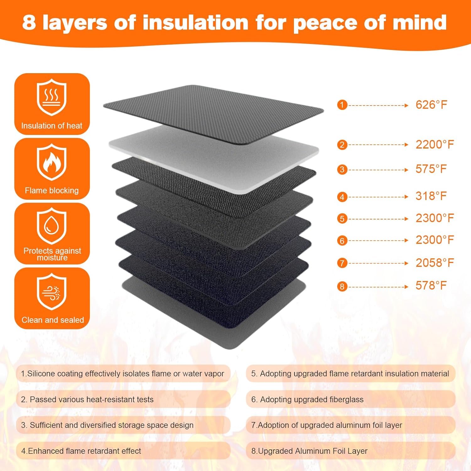 - 【5200°F Fireproof & Secure Locking System】protect your valuables with this fireproof box engineered to withstand extreme temperatures up to 5200°f. dual-layer insulation (fire-resistant silicone-coated cotton + aluminum foil) ensures double protection against flames and heat, passed the extreme heat resistance test. the fireproof document safe box features a reinforced waterproof zipper and moisture-resistant lining, safeguarding passports, legal files, and electronics in fires, floods, or emergencies.
