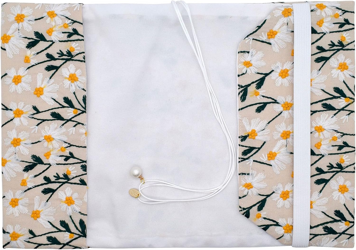 BLBMH Embroidery Book Covers for Paperbacks Fit for 5.5x8.5 inch Adjustable Book Sleeve Cover for Women Over 15 Soft Cloth Protector for Privacy Notebook Novels - Daisy 3
