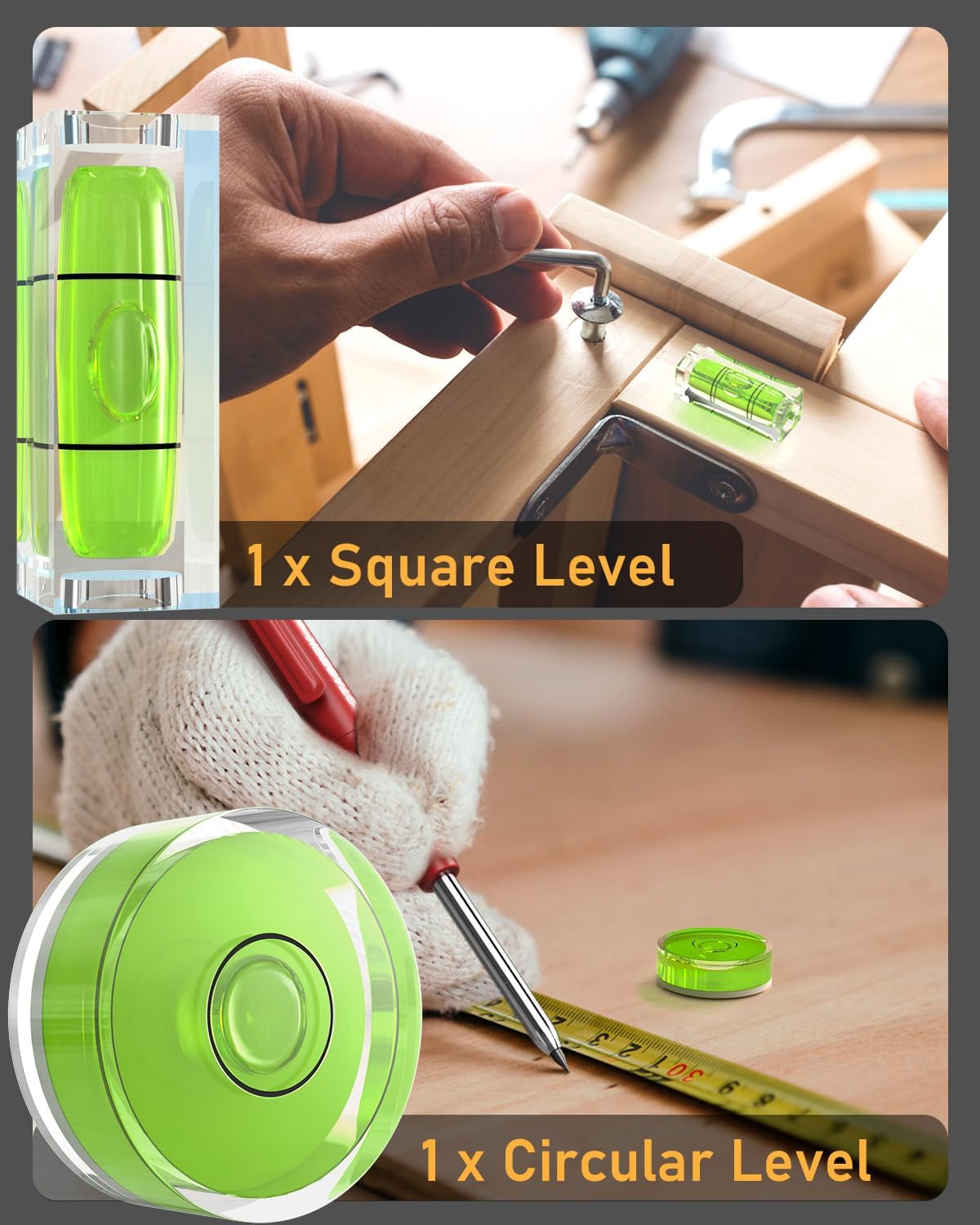 - MULTI-USE WOODWORKING TOOLS FOR VARIOUS APPLICATIONS: This carpenter pencil set includes a carbide scribe tool and a positioning center punch, perfect for precise engraving on tough surfaces such as metal, tile, glass, ceramics, and wood. In addition, the upgraded version of the carbide scribe tool also comes with 5 replacement tips, extending the life of your metal marking pen. In addition, the top of the metal marking pen has a magnetic function, which can help you quickly store nails, nuts and other parts during work. We also include a square level and a round level for use in different scenarios. Paired with a 4B eraser for easy error correction