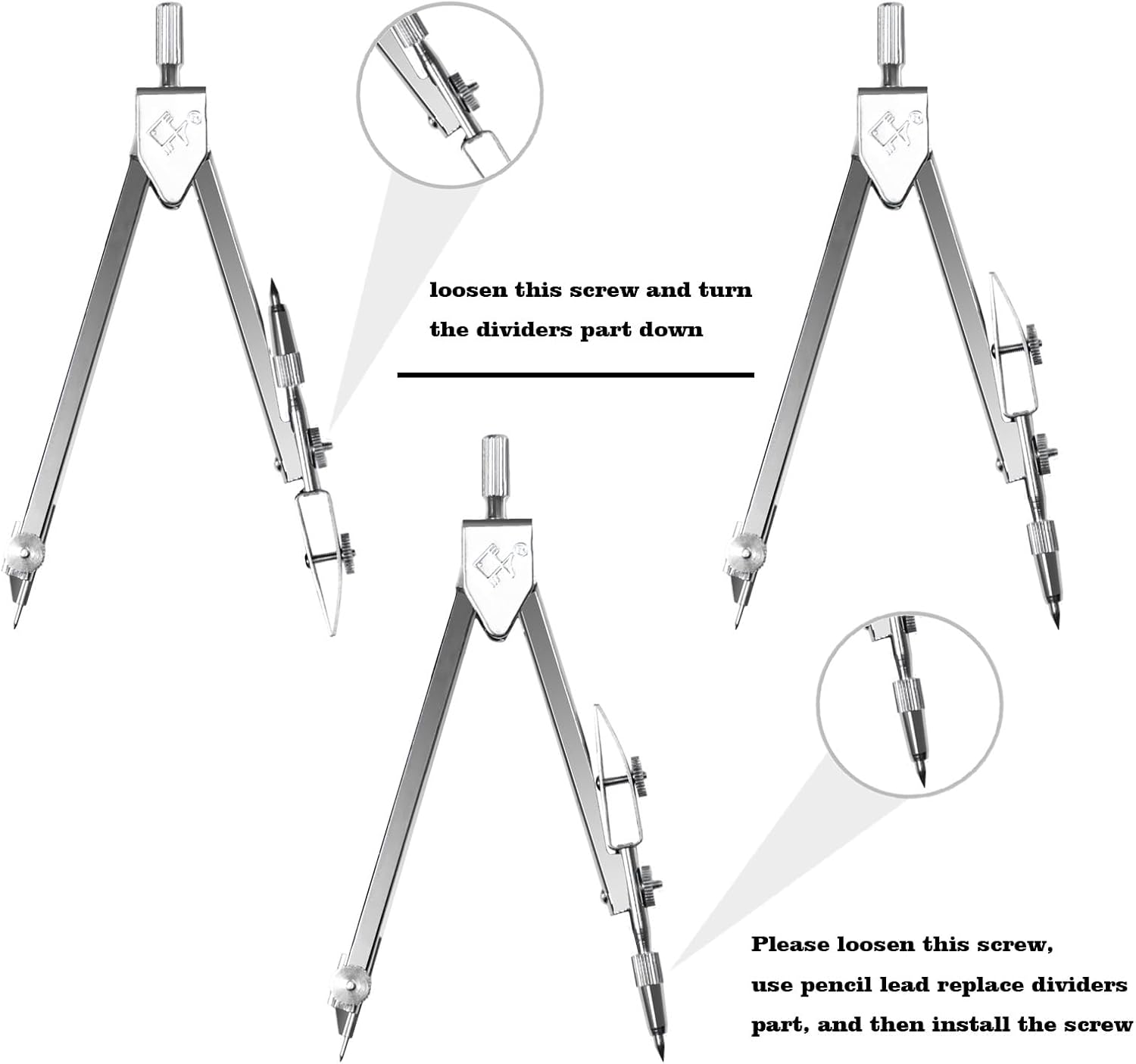- If you receive the product and found the screw of compass is loose, do not worry, it is not a quality problem; The loose screw makes it easier for you to turn the pencil down; You can tighten the screw after using pencil replace divider part