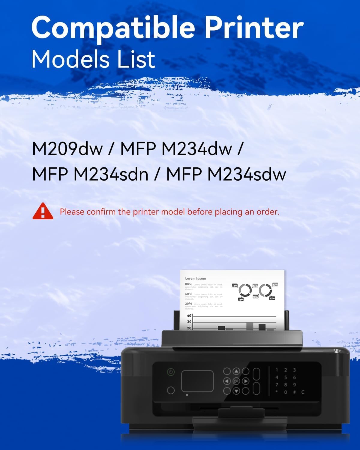 - 【Use with M209 series】: M209dw Printer for HP 134A 134X Black toner cartridge,NOT compatible M209dwe