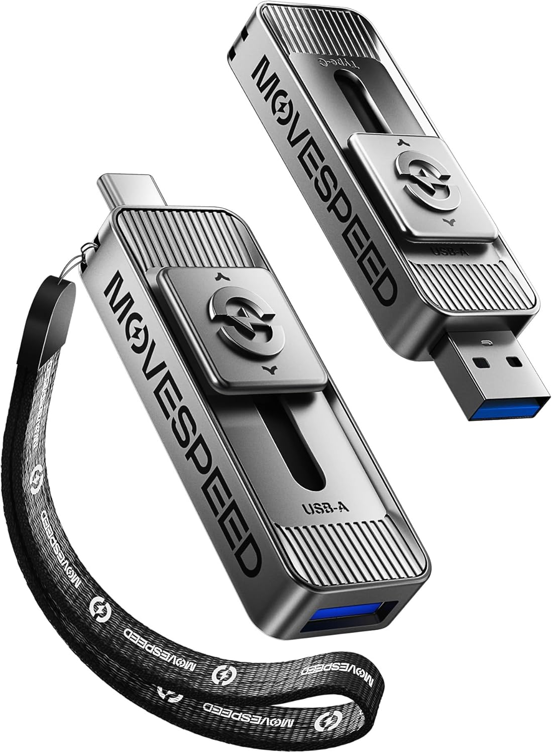 - 【Dual-Port Beast Mode】MOVE SPEED SP05 Solid State Drives slays with push-pull USB3.2 + Type-C ports—plug either side, no flipping, no drama. Yeet 1GB files in 2 seconds. Upgraded zinc alloy armor keeps it icy cool and looks like a cyberpunk gadget— drop-proof metal vibes.