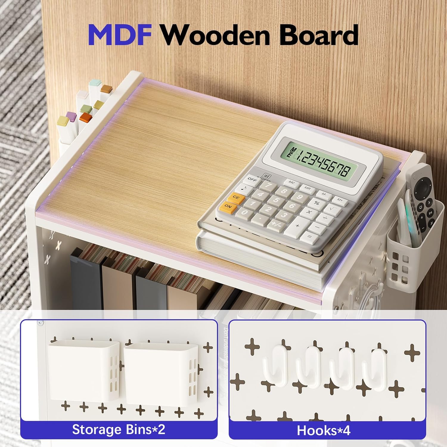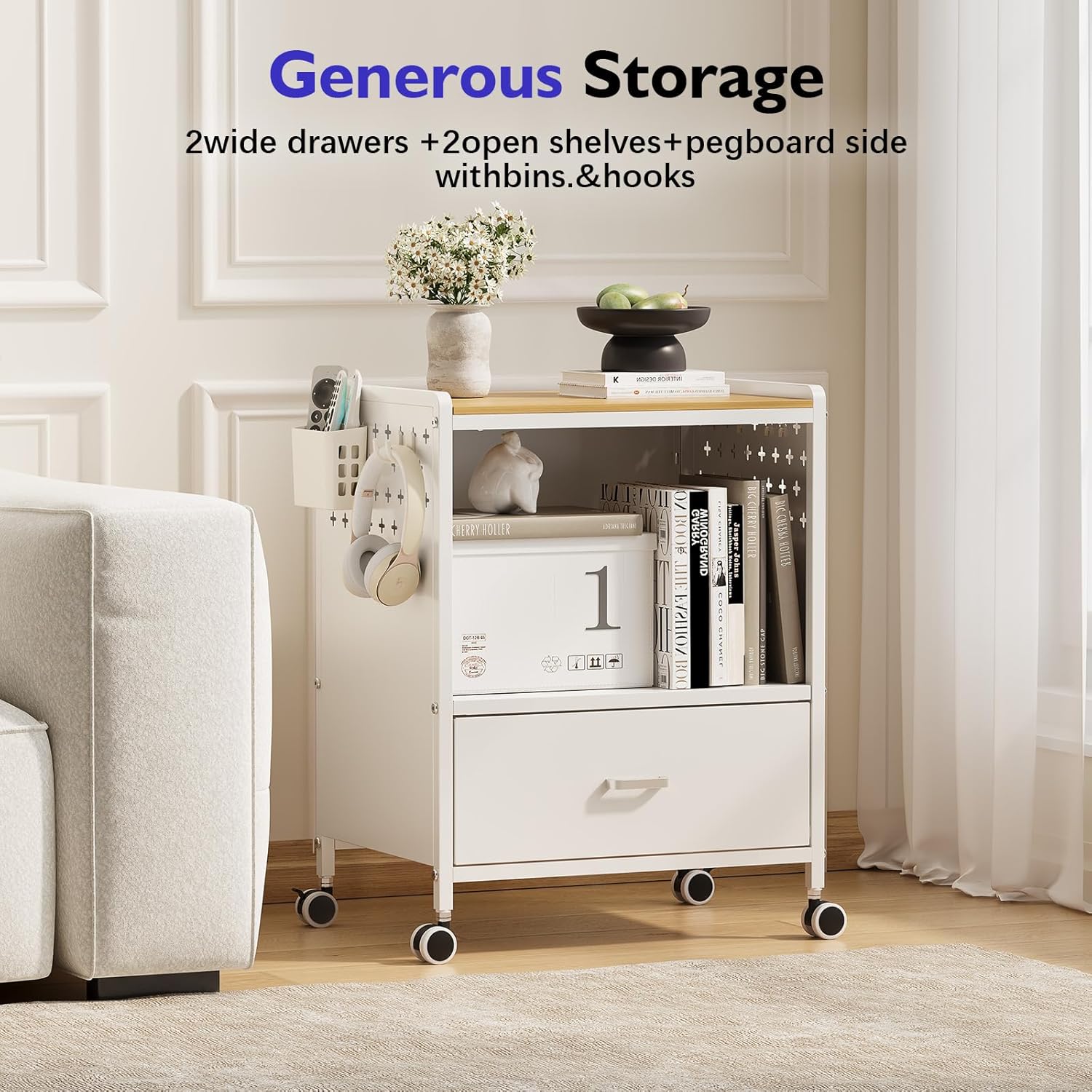 - Smart Adjustable Storage with Organizers:Organize efficiently with 1 spacious drawers (15.7"D x 11"W x 5.9"H) Letter files, plus 2 height-adjustable open shelves. The pegboard side includes 2 storage bins and 4 handy hooks - perfect for keeping pens, scissors and office supplies within reach.